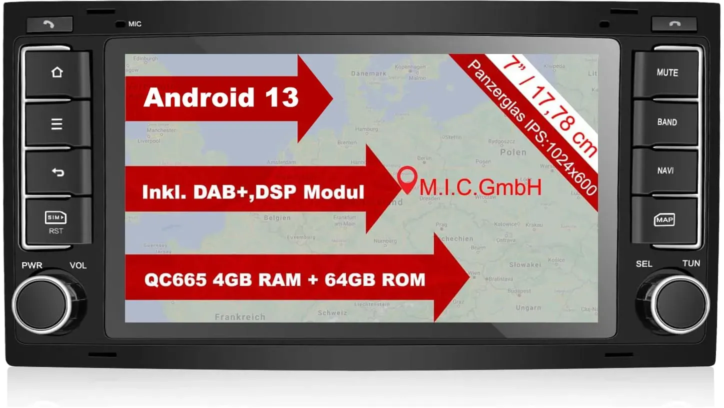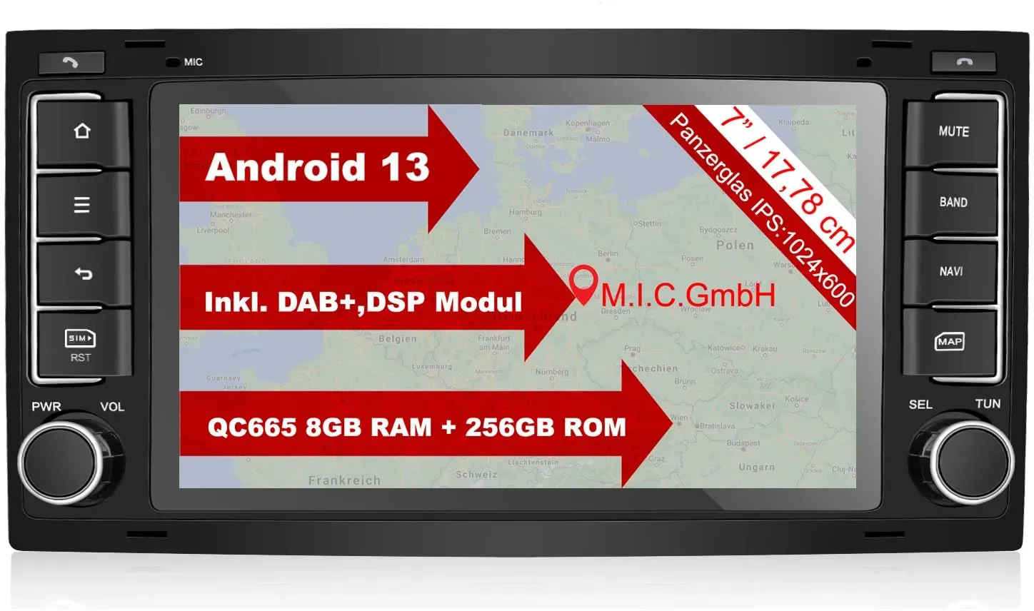Kategorie: Car-Multimedia-Systeme - M.I.C. - GTIN:0788000247389 - WIRELESS CARPLAY & ANDROID AUTO (KABELLOS UND KABELGEBUNDEN): Unterstützt kabellose Verbindung für CarPlay und sowohl kabellose als auch kabelgebundene Verbindung für Android Auto. Ideal für Freisprechanrufe, Navigation und Spotify für iPhone und Android-Smartphones INTEGRIERTES DAB+ UND NAVI: Genießen Sie störungsfreies digitales Radio mit Integriertem DAB+ und nutzen Sie die vorinstallierte Navi-App (Google Maps, Blitzer.de) für präzise GPS-Navigation und entspannte Fahrten TOP-HARDWARE: SNAPDRAGON 665 PROZESSOR UND DSP: Qualcomm QCM6125 Prozessor mit 4x A73 2.0 GHz + 4x A53 1.8 GHz sowie 4 GB RAM und 64 GB ROM für flüssige Leistung. Integriertes 15-Band-DSP-System sorgt für präzise Soundanpassungen WIFI UND SIM-KARTEN-UNTERSTüTZUNG: Bleiben Sie unterwegs online dank integrierter WiFi- und SIM-Karten-Unterstützung, ideal für Streaming, Navigationsdienste und App-Updates BLUETOOTH 5.0 FREISPRECHEINRICHTUNG: Mit Bluetooth 5.0 und integriertem Mikrofon genießen Sie klare Freisprechanrufe und Musikwiedergabe(A2DP) 7-ZOLL IPS-DISPLAY MIT PANZERGLAS: Das hochauflösende (1024x600) IPS-Display bietet brillante Farben und weite Blickwinkel, während das Panzerglas das Display vor Kratzern und Beschädigungen schützt PLUG-AND-PLAY INSTALLATION: Einfacher Einbau ohne Adapter dank direkter Unterstützung der Original-Anschlüsse und integrierter CAN-Bus-Unterstützung Ersatz für VW: T5 und Touareg mit RNS 510 ab 2004 (mit ... Das M.I.C. AVTO7-Ultra ist eine Top-Ausstattung mit Qualcomm Snapdragon 665, 8GB RAM und 256GB Speicher, ideal für anspruchsvolle Nutzer, die maximale Leistung suchen. ![]() ![]() M.I.C. AVTO7-Ultra Android 13 Autoradio mit navi Qualcomm Snapdragon 665 8G+256G Ersatz für VW T5 multivan Touareg mit RNS 2: SIM DAB Plus Bluetooth 5.0 WiFi 2din 7" IPS Panzerglas Bildschirm USB