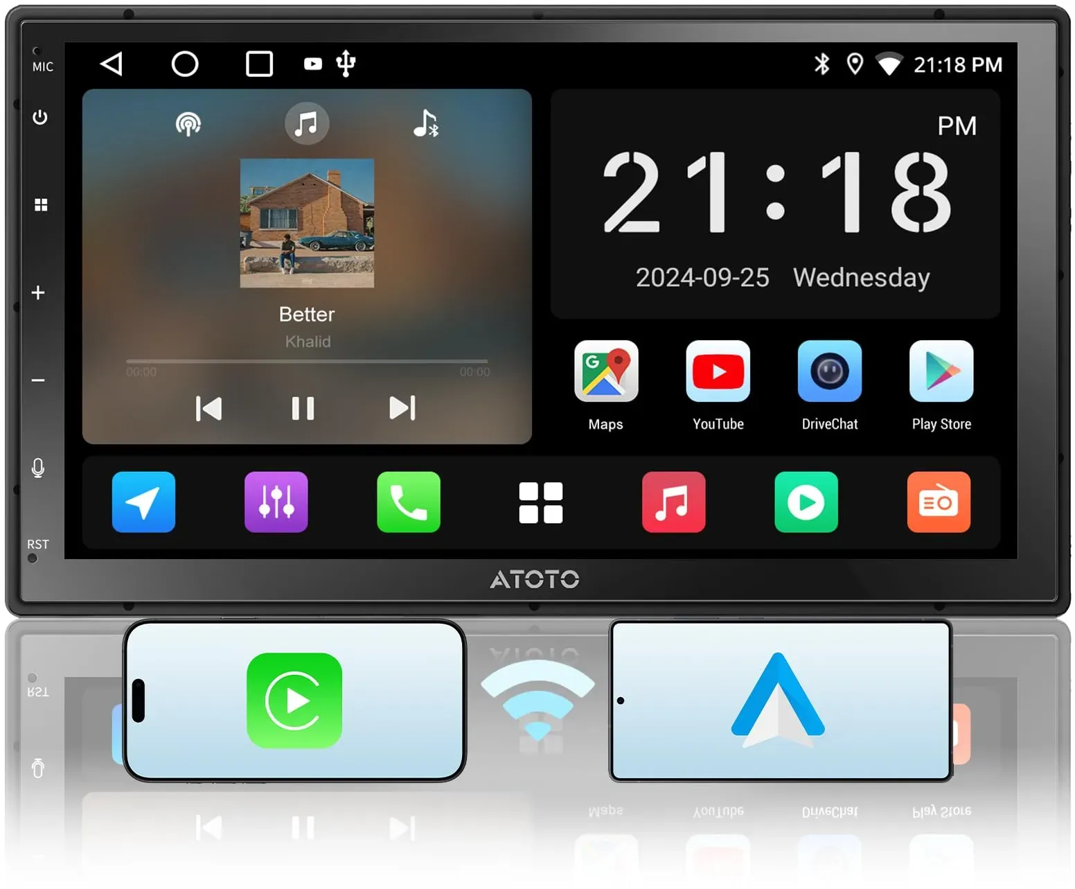 Kategorie: Car-Multimedia-Systeme - ERISIN - Android 14, 8-Kern, 8GB RAM+128GB ROM Das 7 Zoll Android Autoradio bluetooth für Nissan mit Android 14 Betriebssystem und dem leistungsstarken Qualcomm Snapdragon 460 Octa-Core Prozessor (11nm, 4A73+4A53, bis zu 1.8GHz, Adreno 610 GPU). Mit 8GB RAM + 128GB ROM und bis zu 3 USB-Anschlüssen (je 256GB erweiterbar) genießen Sie eine blitzschnelle Reaktionsgeschwindigkeit und flüssiges Multitasking. Benchmark-Ergebnisse über 200000 ren eine stabile Hochgeschwindigkeits-Performance für Navigation, Entertainment und Apps. Integrierte Canbus, USB, TF, Radio, RDS. Split-Screen-Ansicht: Zwei Apps nebeneinander ausführen. Umfangreiche Zusatzfunktionen Autoradio 2din android integriertes Bluetooth 5.1-Modul, kann Ihre Hände befreien und Ihr Fahren sicherer machen; Unterstützung Lenkradsteuerung, können Sie diese Funktion verwenden, um Ihre Musik oder Lautstärke im Auto zu steuern; Unterstützung Torque Pro OBD2 / DVR / TPMS / TV / DAB + / DVB-T/T2 System; Rückfahrkamera-Eingang und Reverse-Shutter-Steuerung. Es verfügt über eingebautes WLAN, mit dem Sie frei im Internet surfen können. Smart UI Design, Unterstützung DIY Tapete und warme oder kühle Farben, Panel Licht Farben. Unterstützt CVBS und die neueste 720P-25FPS / 720P-30FPS / 1080P-25FPS / 1080P-30FPS AHD Rückfahrkamera. Kabellose CarPlay & Android Auto & Bildschirmspiegelung Unterstützt kabelloses & kabelgebundenes CarPlay und Android Auto für eine mühelose Smartphone-Anbindung und ... Das ATOTOZONE A5L bietet eine gute Balance aus Funktionen wie Wireless CarPlay/Android Auto, 24 EQ&DSP und Chat-KI zu einem mittleren Preis. ![]() ![]() ATOTOZONE A5L 2DIN Autoradio mit Navi, 7-Zoll Android Doppel Din Radio CarPlay & Android Auto Wireless, WiFi/BT/USB, 24 EQ&DSP, Chat-KI, Kompatibel mit DAB/DAB+, FM/AM, 2G+32G