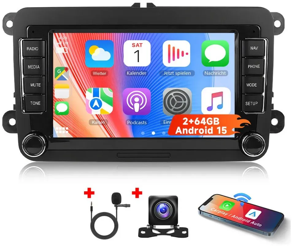 Kategorie: Car-Multimedia-Systeme - kttcorlp - Geeignet für VW Radio Das Autoradio wurde speziell für folgende Volkswagen-Modelle geeignet: Caddy, Jetta, Golf, Polo, Passat, Altea, Toledo, Octavia, Skoda und Seat. Bitte überprüfen Sie die Abmessungen (220 mm x 130 mm) vor dem Kauf.die 2014/2015/2016/2017 gebaut wurden, können unterschiedliche Anschlüsse und CAN-Bus-Konfigurationen vorhanden sein. Bitte kontaktieren Sie uns vor dem Kauf Kabelloses CarPlay und Android Auto Diese vw Golf 5 radio volle Unterstützung für kabelloses CarPlay und Android Auto. Greifen Sie bequem und zuverlässig auf Ihre Apps zu: Navigieren Sie mit Karten, beantworten Sie Nachrichten, hören Sie Ihre Lieblingsmusik. Sprachsteuerung via Siri und Google Assistant ermöglicht es, die Hände am Steuer zu behalten. Diese Kombination aus drahtloser Konnektivität und Steuerung reduziert Ablenkungen und fördert aktiv die Fahrsicherheit Hochwertige HIFI-Qualität Der Klang dieser Golf 5-Radioanlage ähnelt dem Originalgeräusch die Qualität der Tonquelle wird verlustfrei wiedergegeben, um den besten Wiedergabeeffekt zu erzielen Bluetooth & FM/RDS-Radio und DAB+ Die integrierte Bluetooth-Funktion unterstützt Spracherkennung, Telefonbuch-Synchronisation und Bluetooth-Musikwiedergabe. Die digitale FM-Stereo-Radiofunktion ermöglicht Ihnen, Stationen voreinzustellen und überall die neuesten Nachrichten und Verkehrsinformationen zu hören. Surround sound and subwoofer output.Machen Sie die Musik, die Sie spielen, ... Das Hikity Autoradio mit Android 15 ist eine aktuelle und vielseitige Option für VW, Seat und Skoda Fahrzeuge. ![]() ![]()