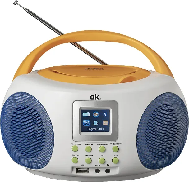Kategorie: CD-Radios - OK. - GTIN:4049011162242 - Sind Sie morgens auch manchmal muffelig? Dann versuchen Sie es doch mal mit Musik im Bad oder beim Frühstück via DAB+ Radio. Das OK. ORC 230 bringt Sie gut in Schwung. Bewährt hat sich eine zeitlose Farbgebung des Gehäuses in klassischem schwarz. Dank dem einen Kopfhöreranschluss erhöhen Sie zusätzlich Ihre Flexibilität. Ein CD-Player ist hier gleich mit integriert. Denn es ist eben doch ein Qualitätsunterschied, ob Sie nur digitale Musik hören oder CDs mit einem guten Player. Das Exemplar besitzt natürlich eingebaute Lautsprecher. Auf dem modernen LCD-Bildschirm werden Ihnen alle Daten angezeigt, die Sie benötigen. Sogar mit Bluetooth-Verbindung können Sie Ihre Musikfiles übertragen und die beliebten Streaming-Plattformen nutzen. Sie sehen: Mit dem DAB+ Radio OK. ORC 230 haben Sie Musik und Spaß überall dort, wo Sie sind. - 52,99 Euro bei Media Markt Online Shop - gefunden von billiger.de Die OK. ORC 515 DAB+ Boombox bietet für 59.99 Euro ein farbenfrohes Design und guten Klang. ![]() ![]() OK. ORC 515 DAB+ Boombox, Mehrfarbig