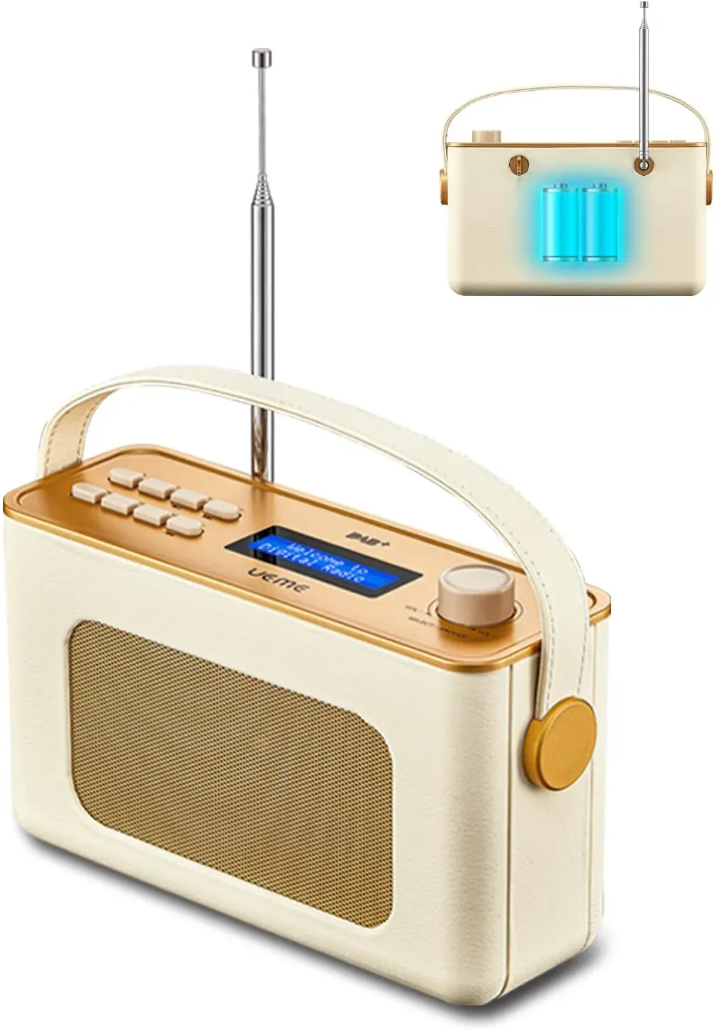 Kategorie: Radios - UEME - GTIN:0799513885845 - DAB+, DAB&FM Radio: Genießen sie alle programme im sendegebiet verfügbaren DAB+ und FM sender, z.B, Ndr Plus, Wdr2, Rockantenne usw; einfacher zugriff auf ihre lieblingssender dank je 30 voreingestellter DAB+/DAB und fm-sender. Lcd-anzeige mit dimmbarer. Dual wecker mit schlummerfunktion. Integriertem Lithium-Akku: Eingebaute wiederaufladbare Lithiumbatterie mit hoher Kapazität, bis zu 15 stunden spielzeit mit voll aufgeladenem akku. (usb-ladekabel enthalten, netzadapter nicht im lieferumfang enthalten). Bluetooth Verbindung: Mit einfach-pairing bluetooth-funktion können sie alle musik stream, podcasts oder hörbücher vom smartphone, tablet oder anderen smart geräter kabellos zuhören. Hervorragende Qualität Klang: 2 x 5W lautsprecher stereo system; personliche einstellung mit integriertem equalizer auf normal, classic, jazz, pop, rock, rede oder my EQ. Robust & Wasserdicht: Robustem gehäuse und schutzklasse IP54 (staub- und spritzwasserschutz), schutz des gerätes vor beschädigungen durch z. B. Eindringenden sand oder wasser. Weichen handgriffe einfach zu tragen, perfekt für den einsatz auf baustellen, werkstätten, im freien usw. - 68,99 Euro bei Amazon Marketplace CE - gefunden von billiger.de Dieses Retro-Design-Radio kombiniert DAB+ und FM mit Bluetooth und einem starken Empfang, perfekt für Liebhaber klassischer Optik. ![]() ![]() UEME Tragbarer Retro Design DAB Plus/FM Radio, Bluetooth Lautsprecher DAB + Radio mit Akku, Radiowecker, Starkem Empfang, kofferradio mit DC Netzkabel (Cr me)