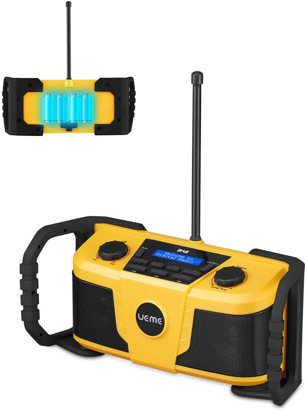 Kategorie: Radios - UEME - Digitales Radio: Einfache Bedienung und ausgezeichnete Empfangsqualität; Antenne ausziehbar. Genießen Sie alle Programme von verfügbaren Digital Audio Broadcasting und UKW Sender, z.B.WDR2, NDR 2, RockAntenne usw. Einfacher Zugriff auf Ihre Lieblingssender dank je 30 voreingestellter DAB+/DAB und FM-Sender. Retro Design und Tragbar: Hochwertiger Kunstlederbezug; zarte Tasten. Die Gehäuse und Handgriffe sind mit Leder verkleiden. Dadurch ist das DAB+ Radio praktisch für zu Hause und unterwegs - Optimal auch für Küche, Büro. Bluetooth Lausprecher: Hervorragender Klang kommt vom inneren 3W-Stereolautsprecher; Kopfhörer-Anschluss ist auch dabei. Nutzen Sie das DAB+ Radio auch als Lautsprecher durch Bluetooth. Radiowecker: Auf der blauen dimmbaren LCD-Anzeige zeigt es Zeit, Datum und Information der Radiosendung an. Zwei einstellbare Wecker mit Schlummerfunktion. Aufladbarer Akku:Eingebauter wiederaufladbarer 2600mAh Lithium-Akku, bis zu 9-10 Stunden @100% Volumen Spielzeit mit voll aufgeladenem Akku. (USB-Ladekabel enthalten, Netzadapter nicht im Lieferumfang enthalten). - 79,99 Euro bei Amazon Marketplace CE - gefunden von billiger.de Ein besonders robustes Baustellenradio mit großem 6000mAh Akku, Staub- und Stoßfestigkeit, ideal für anspruchsvolle Umgebungen. ![]() ![]() UEME Baustellenradio Mit Akku Aufladbar (6000mAh), Tragbares DAB+/FM Radio, Bluetooth Lautsprecher & Dual Radiowecker,Starkem Empfang, Staubbeständig/Stoßfest für Baustelle/Camping/Garten(Rot)