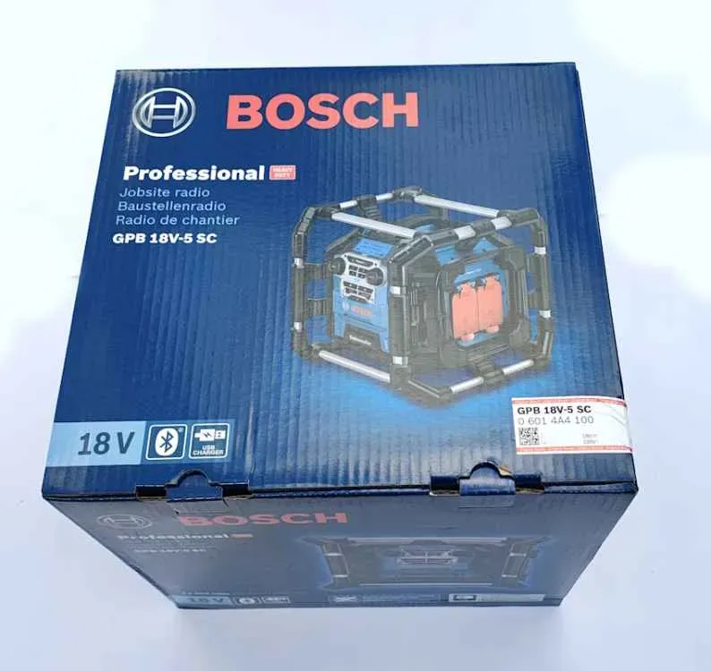 Kategorie: Radios - Bosch - GTIN:4059952559506 - Bosch Baustellenradio GPB 18 V-5 SC Professional, DAB+, Subwoofer Das GPB 18V-5 SC Professional ist die robuste Musikquelle für starken Sound auf rauen Baustellen. Dieses robuste Radio ist mit DAB+, Bluetooth , FM und AUX kompatibel und liefert immer den richtigen Sound für angenehmes Arbeiten. Die perfekte Wahl zum Tonangeben bei rauen Arbeitsbedingungen: Das GPB 18V-5 SC Professional verfügt über einen schützenden überrollkäfig und wurde für den Einsatz bei rauen Arbeitsbedingungen konzipiert. Kristallklar und kraftvoll zugleich: Der beeindruckende Klang dieses Radios kommt aus vier Lautsprechern mit einer Gesamtausgangsleistung von 20 Watt und einem integriertem Subwoofer (20 W) für eine starke Basswiedergabe. Dieses Gerät eignet sich besonders für digitalen Radioempfang und das Abspielen von Musik über Smartphones. Das Gerät ist mit allen Bosch Professional 18-Volt-Akkus kompatibel. Das GPB 18V-5 SC Professional kann mit einem 18-Volt-Akku oder mit Netzstrom betrieben werden und verfügt zusätzlich über zwei Ausgänge zur Stromversorgung von Werkzeugen sowie USB-Anschluss für eine Schnellaufladung mit bis zu 2,1 A. Radiofrequenzbereich FM: 87,5 108 MHz Radiofrequenzbereich DAB+: 174,928 239,2 MHz Speicherplätze FM: 4 Speicherplätze DAB+: 4 Eingangsspannung(en) Akku: 18 V Eingangsspannung(en) Netz: 100 240 V Gewicht exkl. Akku: 8.8 Nennleistung Verstärker (bei Netzbetrieb): 40 Lieferumfang: 1x Bosch Radio GPB 18V-5 SC (ohne ... Ein kompaktes HiFi-System mit CD, Bluetooth, UKW/DAB+-Tuner und 2x 30W Ausgangsleistung, das trotz seiner Größe einen guten Klang liefert. ![]() ![]()