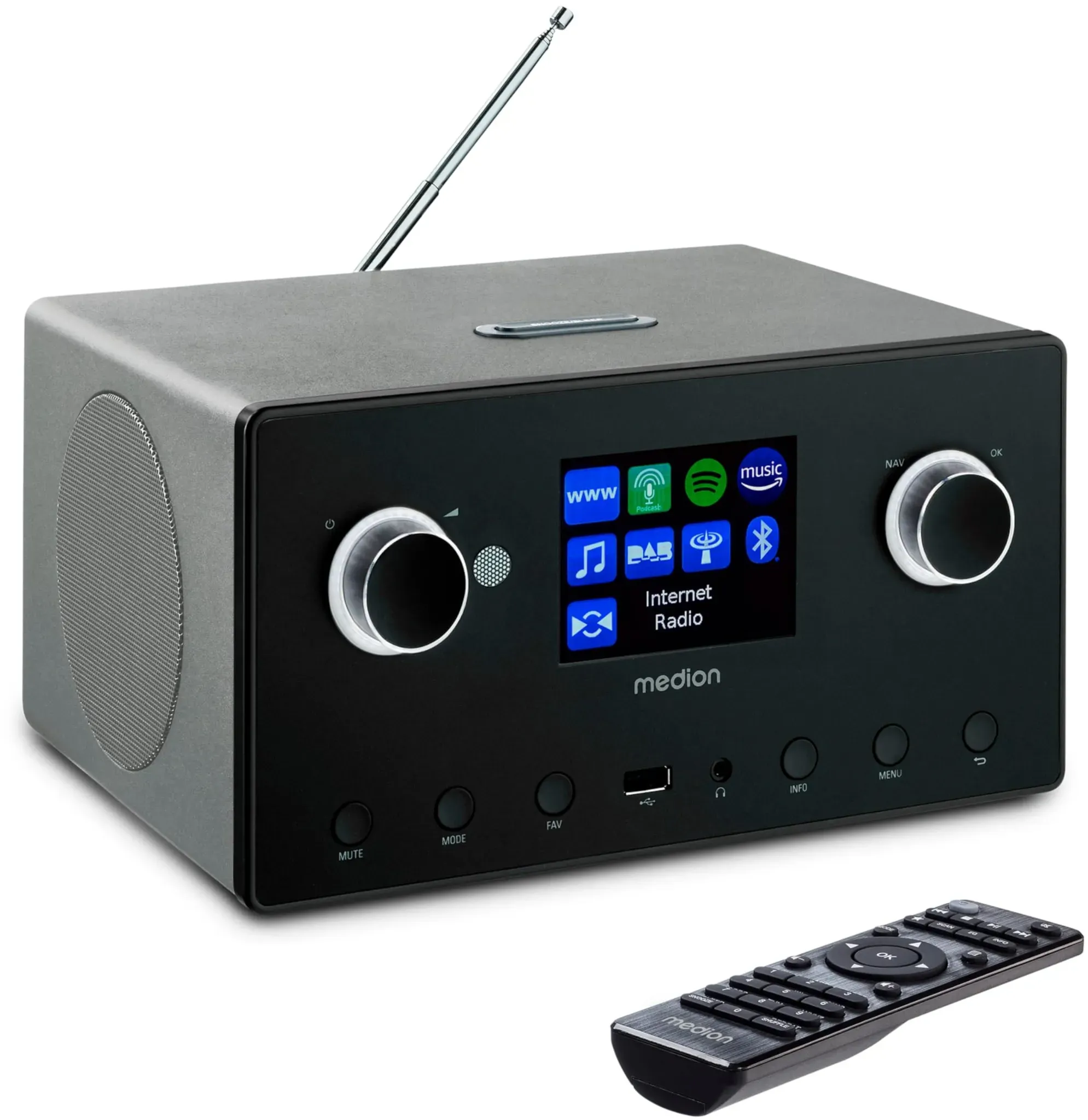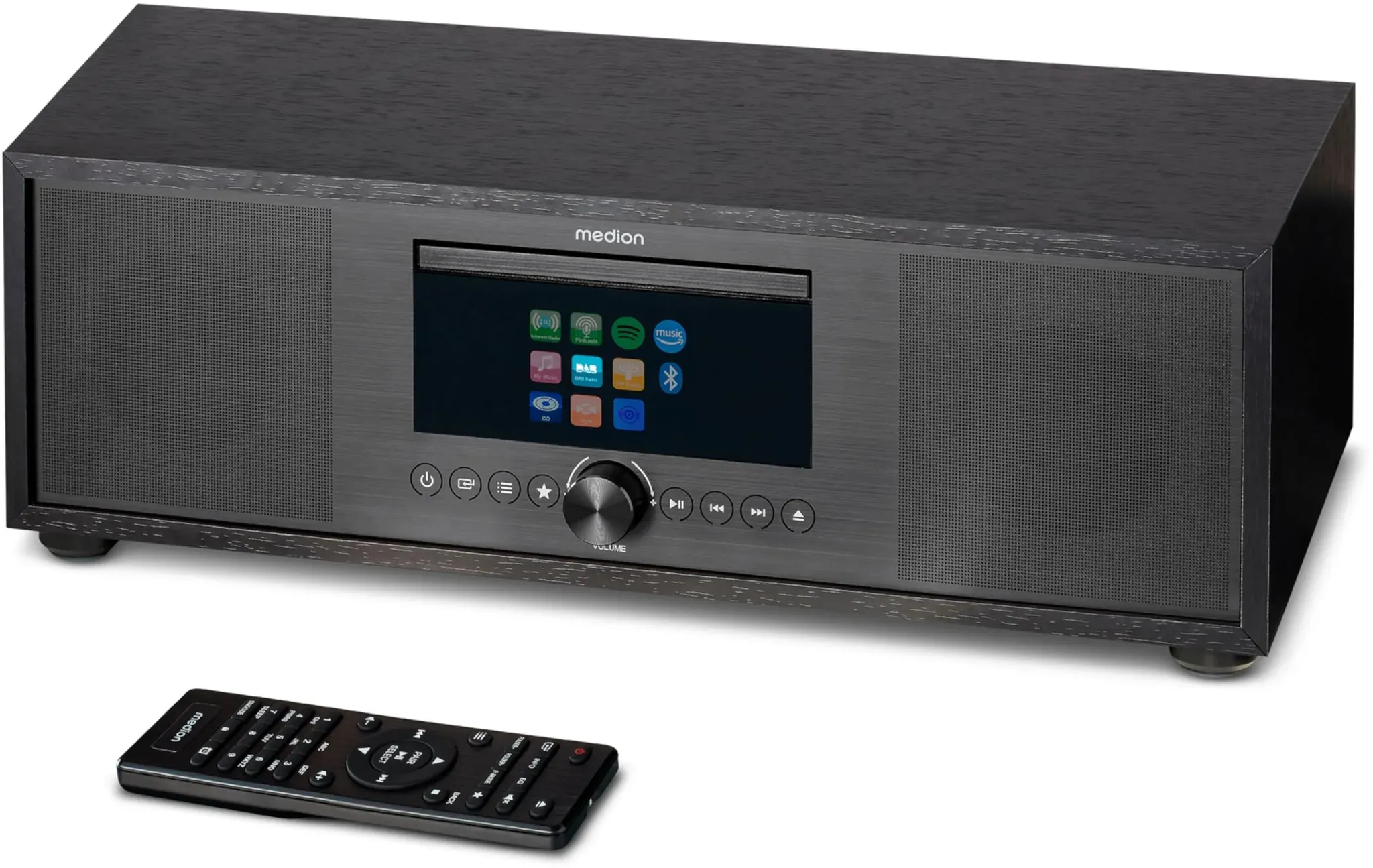 Kategorie: Radios - Medion - GTIN:4061275225280 - 2.1 Internetradio im kompaktem & modernem Design, Empfang von über 25.000 Internetradiosendern und zahlreichen Podcasts aus aller Welt DAB+/UKW Radio mit je 40 Senderspeichern, automatische & manuelle Sendersuche, Amazon Music und Spotify-Connect Wiedergabefunktion, Equalizer (Normal, Flat, Jazz, Rock, Soundtrack, Klassik, Pop, Nachrichten, Mein EQ) Musikstreaming von Smartphone & Tablet via Bluetooth, Bedienung per Fernbedienung oder per MEDION LifeStream 2 APP, Uhrzeitanzeige & Weckfunktion, Schlummer-/Einschlaffunktion Dimmbares 8,1 cm (3,2') TFT-Farbdisplay (320 x 240 Pixel), Bluetooth, USB, Kopfhöreranschluss, AUX-In, LINE-Out, WLAN- und Radio-Stabantenne, 2 x 7,5 W + 15 W Subwoofer (RMS Ausgangsleistung) Lieferumfang: MEDION LIFE MD89295 P85444 2.1 Internetradio, Fernbedienung, Netzadapter, Bedienungsanleitung, karte - 124,85 Euro bei Amazon Marketplace CE - gefunden von billiger.de Diese Kompaktanlage bietet Internetradio, DAB+, CD/MP3-Player und einen Subwoofer, perfekt für ein umfassendes Musikerlebnis. ![]() ![]() MEDION P66400 Stereoanlage (Internetradio, DAB+, CD/MP3-Player, Spotify Connect, Amazon Music, PLL UKW Radio, USB, AUX, Kompaktanlage, Subwoofer Weckfunktion, Sleep Einschlafautomatik) anthrazit