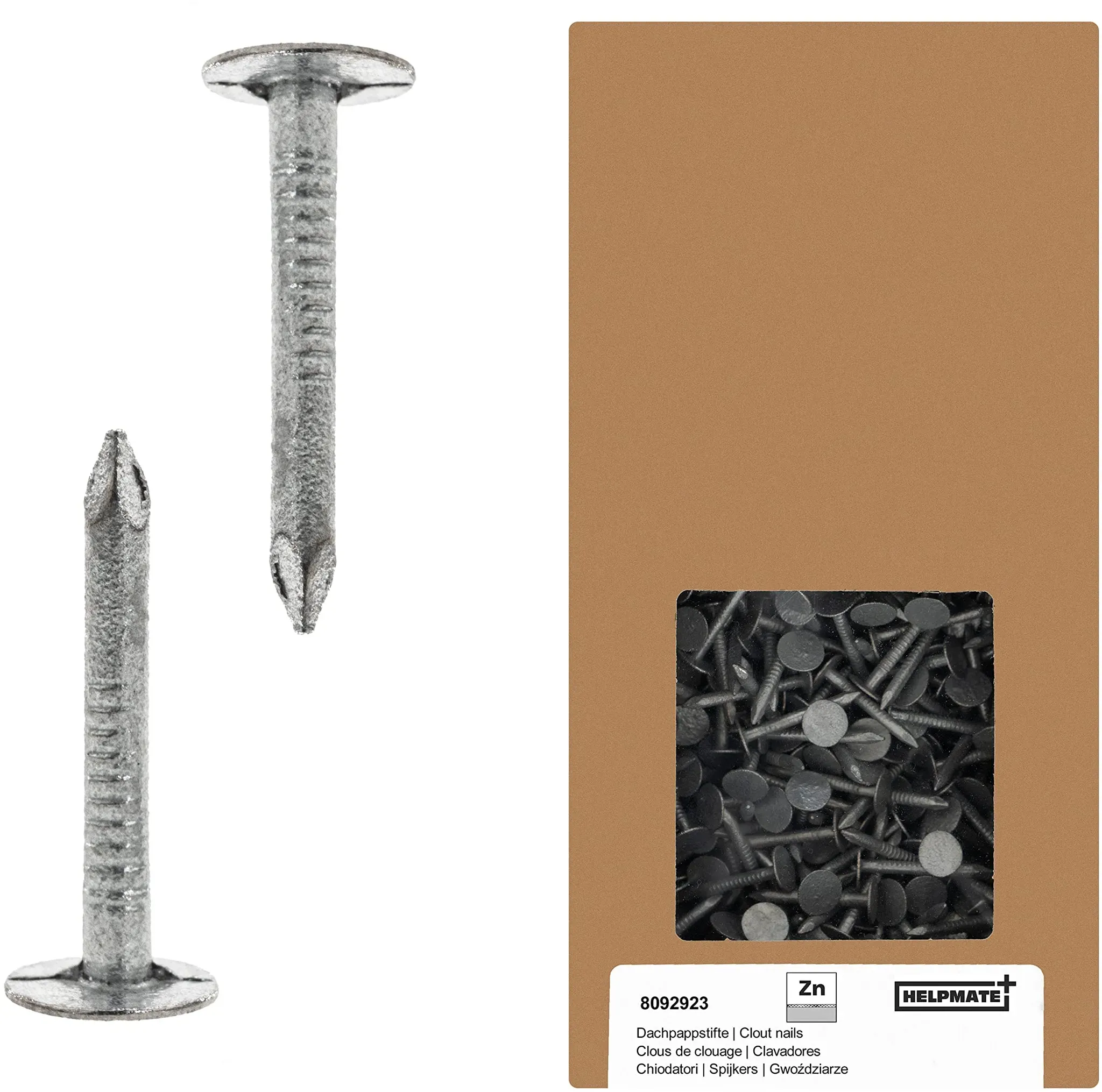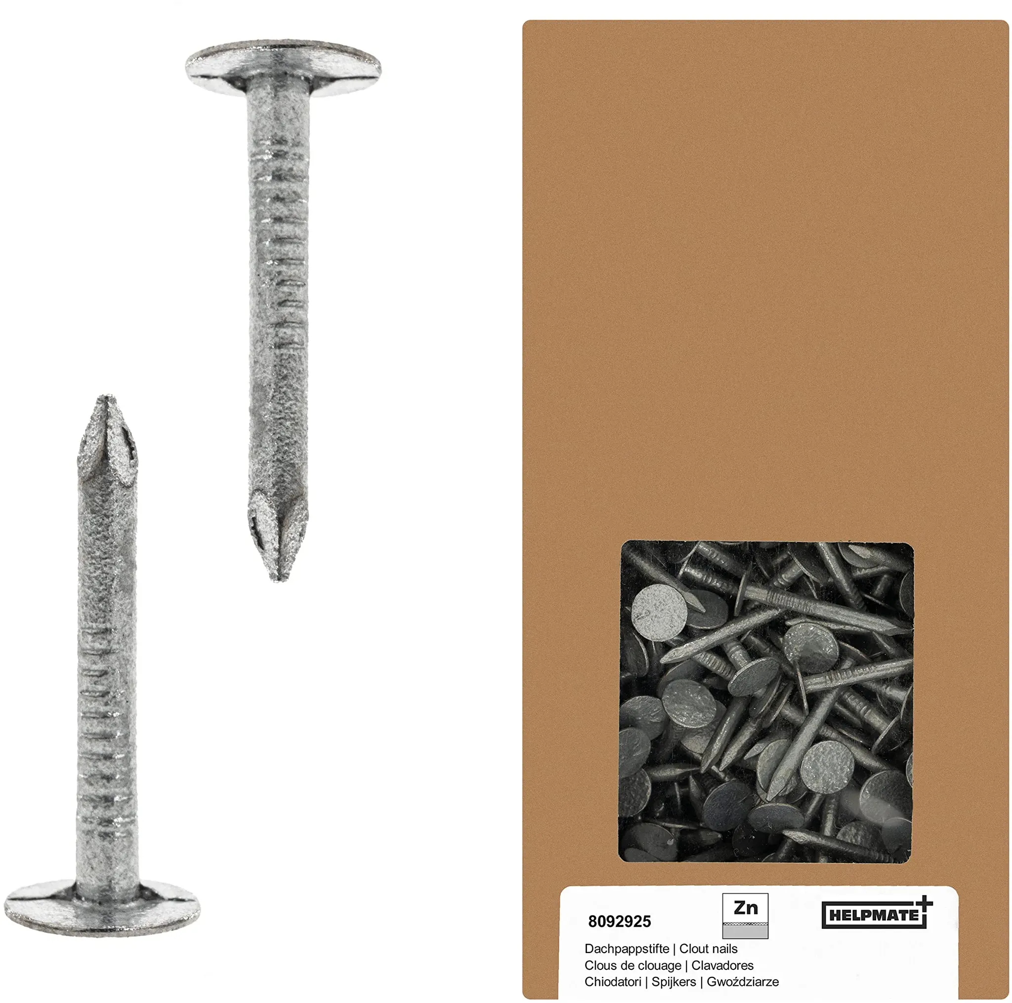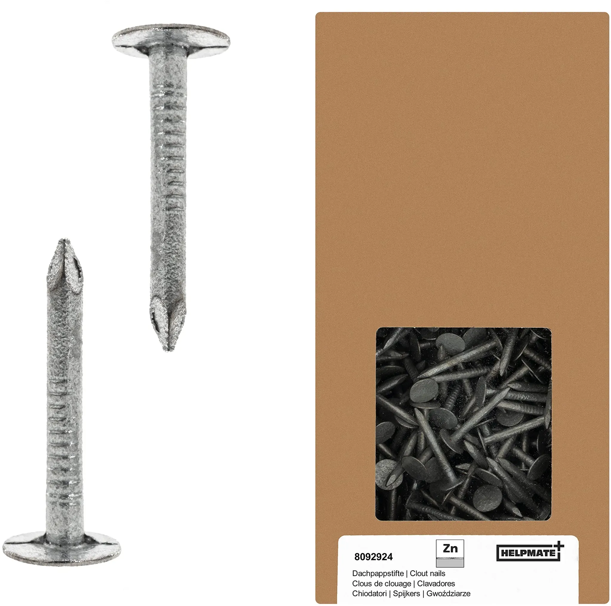 4 Händlerangebote bei billiger.de - Kategorie: Sonstige Elektroinstallationsartikel - Helpmate - VIELSEITIG EINSETZBAR: HELPMATE Dachpappstifte eignen sich ideal zur Befestigung von dünnen Materialien auf Holzkonstruktionen, wie zum Beispiel Dachpappe, Kunststoffplanen oder Schieferplatten FüR DEN AU ENBEREICH: Dank der mechanisch verzinkten Oberflächenbeschichtung sind die Dachpappnägel korrosionsbeständig und erhalten einen höheren Rostschutz als herkömmliche verzinkte Nägel STARKER HALT: Der breite Flachkopf verhindert das Herausreißen des Befestigungsmaterials und passt sich hervorragend dem Untergrund an. Da der Schaft hart und stabil ist, verbiegt er sich nicht beim Einschlagen EINFACH ZU BEDIENEN: Unsere Dachpappennägel überzeugen durch Qualität und Einfachheit. Zum Verarbeiten wird lediglich ein Hammer benötigt, da die Nägel einfach eingeschlagen werden können DEUTSCHE QUALITäTSPRüFUNG: HELPMATE Produkte werden in Deutschland qualitätsgeprüft, um einen sicheren und professionellen Arbeitsablauf zu gewährleisten - GTIN:4032526956871 ![]() ![]() Helpmate Dachpappennägel 2,5x25 mecha vz DIN 1160 B Dachnägel ideal für Dachpappe, Kunststoffplanen & Schiefernplatten (8092918)