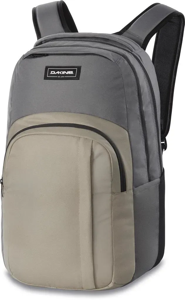 Kategorie: Schulrucksäcke - DAKINE - GTIN:0194626567129 - Dakine Rucksack CAMPUS 33L, Pinebark Der Dakine Campus L 33L Rucksack ist die perfekte Wahl für alle, die ein stilvolles und funktionales Accessoire für Schule, Freizeit und Abenteuer suchen. Mit einem Volumen von 33 Litern bietet dieser Rucksack ausreichend Platz für alle Essentials und lässt sich vielseitig einsetzen. Der Rucksack überzeugt durch seine schlichte Farbgebung und durchdachte Designdetails. Die S-gekrümmte Rückwand und die ergonomisch geformten Schultergurte sorgen für angenehmen Tragekomfort, selbst bei langen Tragezeiten. Ein verstellbarer Brustgurt gewährleistet zusätzliche Stabilität und verhindert ein Verrutschen der Schultergurte während der Nutzung. In einer gepolsterten Laptoptasche finden Geräte bis zu 15 Zoll einen sicheren Platz, perfekt für die Mitnahme wichtiger Technik. Kleine Utensilien können dank der praktischen Organizer-Fach geordnet verstaut werden. Eine mit Fleece gefütterte Sonnenbrillen-Tasche schützt die Brille vor Kratzern und sorgt dafür, dass sie immer sicher aufbewahrt bleibt. Für die kleinen Hungerpausen unterwegs ist die isolierte Fronttasche ideal, um Snacks und Getränke frisch zu halten. Das geräumige Hauptfach bietet Platz für Wechselkleidung oder andere persönliche Gegenstände, während Mesh-Innentaschen die Organisation weiter erleichtern. Der gepolsterte Boden sorgt für zusätzliche Stabilität und Schutz, sodass der Inhalt gut gesichert ist. Neben den großzügigen ... Der "Dark Stargazer" Rucksack für 74.90 Euro ist eine beliebte und vielseitige Farbvariante. ![]() ![]() Dakine Campus L 33L Dark Stargazer