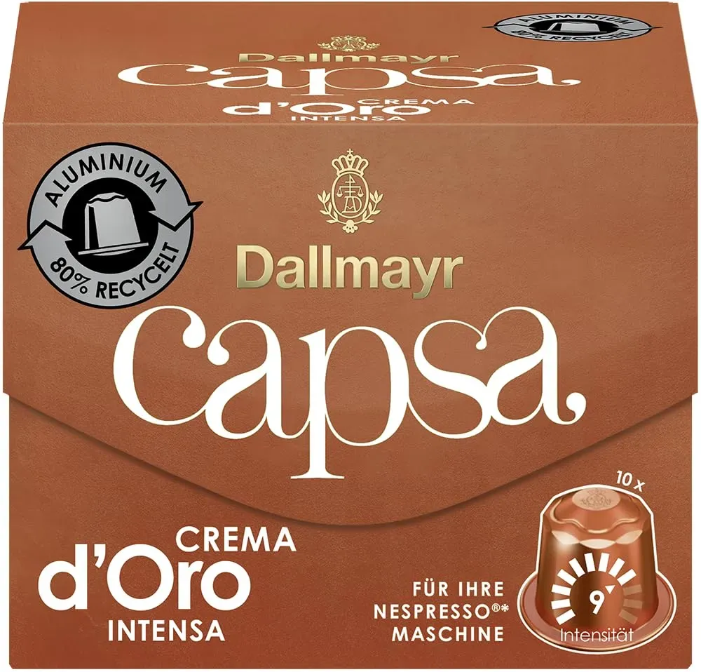 Kaffee Espresso Lifestyle Feinschmecker - - Dallmayr Kapseln: für einzigartigen Kaffee-GenussBei dieser neuen Genussklasse von Dallmayr wird jede Sorte durch ihr einzigartiges Profil bei Ihnen Eindruck hinterlassen!In jeder dieser dünnwandigen Kaffeekapseln, die ohne weitere Umverpackung auskommen, stecken bis zu tausend Aromen. Im Gegensatz zu vielen anderen Produkten wirken die Dallmayr Kapseln wie kleine Aromatresore. Sie schützen den Kaffee vor Licht und Sauerstoff und sind mit dem größtmöglichen Volumen gefüllt. Dies ist ein entscheidender Faktor für das ultimative Geschmackserlebnis.Der Capsa Crema d'Oro ist ein 100% Arabica-Kaffee mit ausgewogenem und mildem Aroma und einer Intensität von 5. Die besonders schonende Röstung und die samtig feine, helle Crema sorgen für den besonderen Genussmoment.Geeignet für Nespresso® Maschine. - Versandkostenfrei: false - Sale: true - - - bei Büroshop24 - gefunden von shopping24 Günstige Kapseln der intensiven Crema d'Oro Variante für Kapselmaschinen-Nutzer. ![]() ![]() Dallmayr Capsa Crema d'Oro Intensa Kaffeekapseln 10 St.