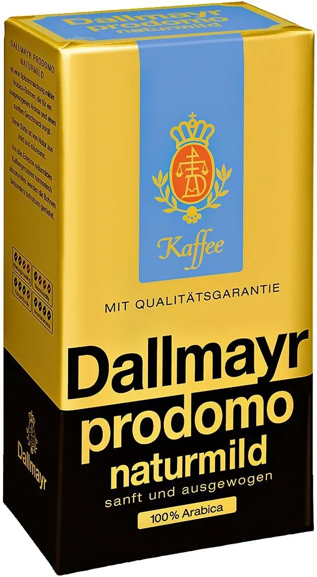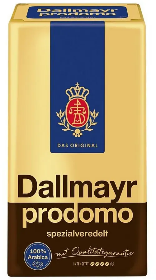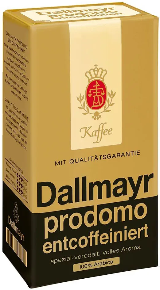 6 Händlerangebote bei billiger.de - Kategorie: Kaffee & Espresso - Dallmayr - Dallmayr prodomo ist eine Spitzenmischung feinster Arabica-Hochlandkaffees aus den besten Anbaugebieten der Welt. Den typischen Geschmack prägen vor allem die Arabica-Bohnen aus den fruchtbaren Süd-Provinzen äthiopiens, der Urheimat des Kaffees. Dallmayr prodomo entcoffeinierter gemahlener Kaffee volles Aroma 500gDallmayr prodomo ist eine Spitzenmischung feinster Arabica-Hochlandkaffees aus den besten Anbaugebieten der Welt. Den typischen Geschmack prägen vor allem die Arabica-Bohnen aus den fruchtbaren Süd-Provinzen äthiopiens, der Urheimat des Kaffees.Für Dallmayr prodomo entcoffeiniert werden edle Arabica-Hochlandkaffees entcoffeiniert, spezial veredelt und durch die Dallmayr Vollaromaröstung vollendet. Sie genießen einen harmonischen Kaffee mit vollem Aroma. Dabei entsprechen circa 15 Tassen Dallmayr prodomo entcoffeiniert einem Coffeingehalt von 1 Tasse Dallmayr prodomo.Alois Dallmayr KG Dienerstr. 14-15 80331 München Deutschland Dallmayr Alois KG Dienerstr. 14-15, 80331 München Zutatern: Röstkaffee gemahlen, 100 % ArabicaNährwertangaben je 100 g (unzubereitet) Energie 754 kJ 180 kcal Fett davon gesättigte Fettsäuren 13 g 5,9 g Kohlenhydrate davon Zucker 24 g 1,5 g Eiweiß 9 g Salz 0,03 gKühl (nicht im Kühlschrank), trocken & dunkel lagern. Geöffnet innerhalb von 4 Wochen verbrauchen.Röstkaffee gemahlen entkoffeiniertAusführung des Inhalts (Packung): 500 g/Pack. · ... Für alle, die einen intensiveren Kaffeegeschmack bevorzugen, sind diese ganzen Bohnen eine gute Wahl. ![]() ![]() Dallmayr Prodomo intensiv Kaffeebohnen 500 g
