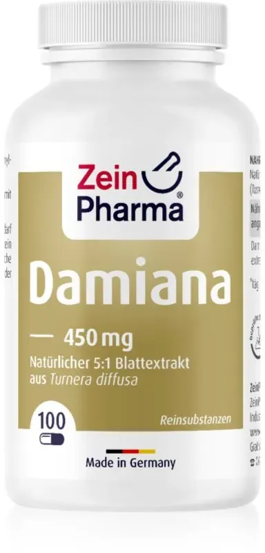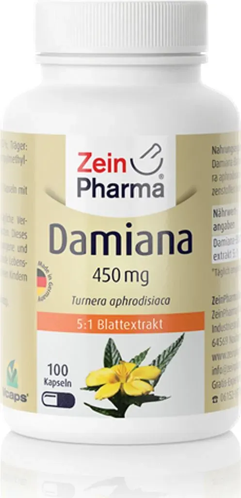 Kategorie: Nahrungsergänzungsmittel - ZeinPharma - ZeinPharma Damiana 450 mg, 100 KAP, Nahrungsergänzungsmittel für Männer Unisex, Eigenschaften: für Männer und Frauen geeignet - 20,00 Euro bei NOTINO - gefunden von billiger.de ![]() ![]() DAMIANA KAPSELN - 450 mg eBay 5:1 Blattextrakt, 100 St PZN 09542702