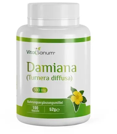 2 Händlerangebote bei billiger.de - Kategorie: Nahrungsergänzungsmittel - vitasanum - VitaSanum® - Damiana (Turnera diffusa) 500 mg 100 Kapseln VitaSanum® Damiana (Turnera diffusa) ist eine Pflanze, die traditionell für ihre aphrodisierenden und entspannenden Eigenschaften geschätzt wird. Als Nahrungsergänzungsmittel bietet Damiana verschiedene potenzielle Vorteile: Steigerung der Libido: Damiana wird oft als natürliches Aphrodisiakum verwendet. Einige Studien und traditionelle Anwendungen deuten darauf hin, dass es helfen kann, das sexuelle Verlangen zu steigern. Stimmungsaufhellung: Es gibt Hinweise darauf, dass Damiana stimmungsaufhellende Eigenschaften haben kann, was es zu einer nützlichen Ergänzung für Menschen mit leichten depressiven Symptomen machen könnte. Entspannung und Stressabbau: Traditionell wird Damiana zur Förderung der Entspannung und zur Reduzierung von Stress und Angstzuständen verwendet. Verdauungsförderung: Damiana kann auch eine positive Wirkung auf das Verdauungssystem haben und wird manchmal bei Verdauungsbeschwerden wie Verstopfung eingesetzt. Menstruationsbeschwerden: Einige Frauen nutzen Damiana zur Linderung von Krämpfen und Beschwerden während der Menstruation. Diuretische Eigenschaften: Damiana hat diuretische Eigenschaften, was bedeutet, dass es helfen kann, die Harnproduktion zu steigern und möglicherweise bei der Entgiftung des Körpers unterstützend wirkt. Kontraindikationen: Es ist wichtig zu beachten, dass viele der ... Dieses Produkt ist eine umfassende Mischung mit Damiana, Maca und Muira Puama, ideal für Anwender, die eine breitere Unterstützung suchen. ![]() ![]() BIOMENTA Männersache Forte - 150 Kapseln - Maca, Muira Puama, Damiana uvm. Kapseln, 108 g