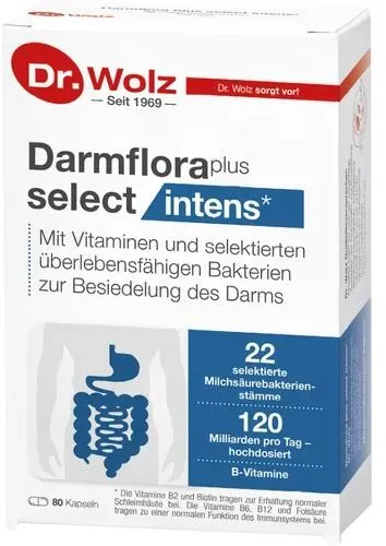 Dr. Wolz Zell - Darmflora plus select intens Kapseln 80 stk - bei apotheke.de - aus Yadore Produktdaten medikamente-per-klick.de bietet einen fairen Preis im mittleren Segment. ![]() DARMFLORA plus select intens Kapseln 80 St