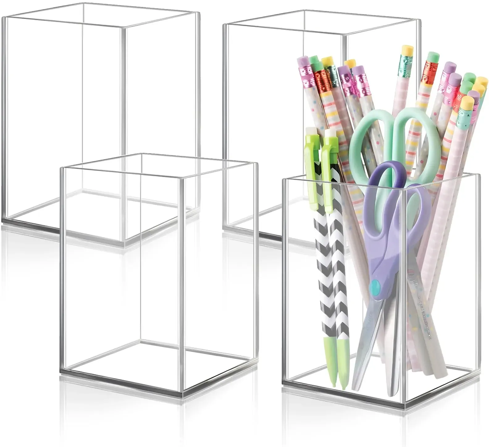 Auf Lager Versand durch AmazonDARUITE 4 Stück Acryl Stiftehalter, Robuster Transparenter Quadratischer Stiftehalter Schreibtisch, Pinselhalter für Schule, Zuhause, Büro oder Küche