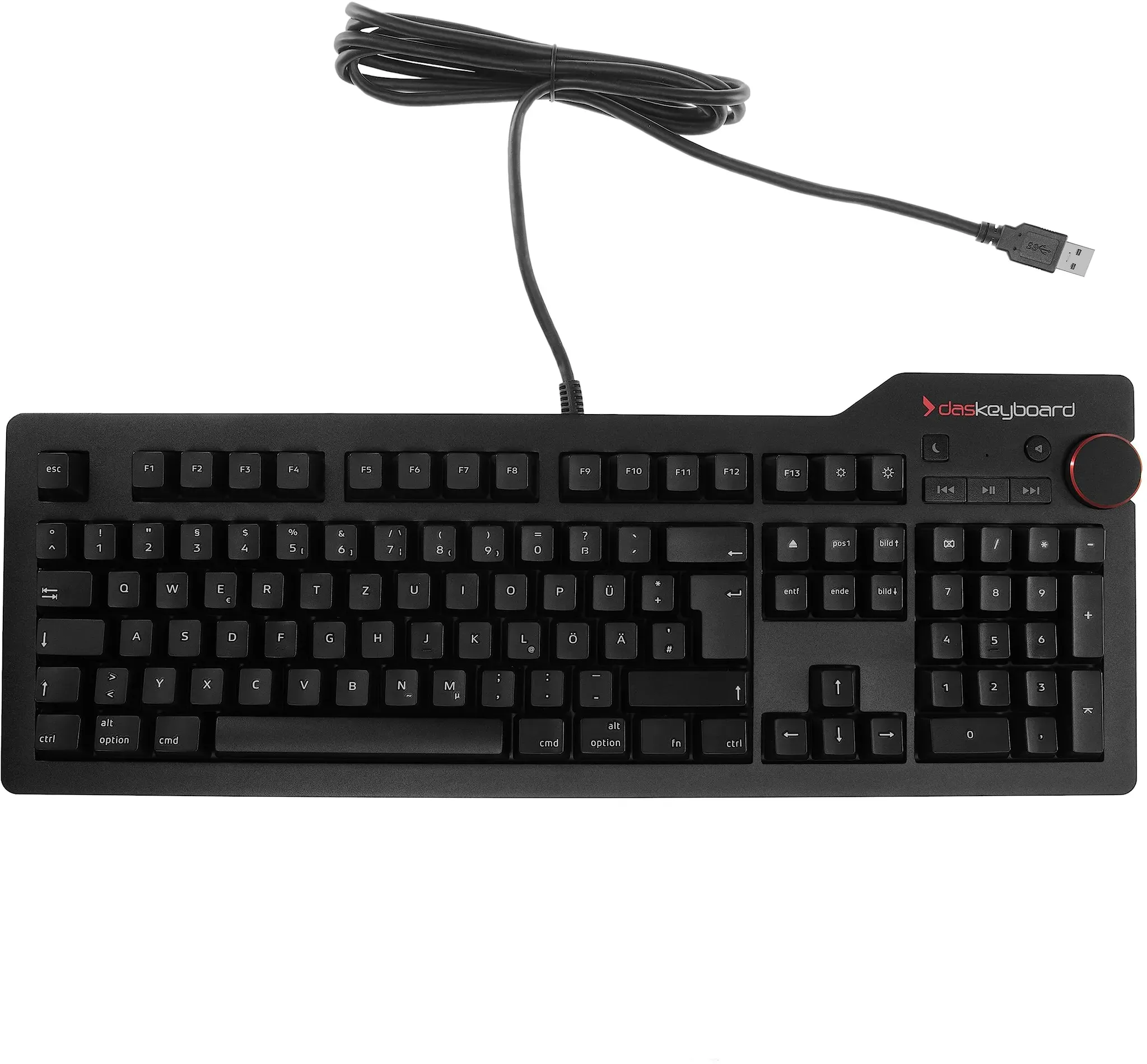 Kategorie: Zubehör für Eingabegeräte - Das Keyboard - GTIN:0855800001661 - Leistungsstarke mechanische Tastatur für Mac Power-Nutzer: Das Keyboard 4 Professional bietet unvergleichlichen Tippgenuss für den modernen Arbeitsalltag. Die Verbindung aus Haptik, psychoakustischem Erlebnis und herausragender Verarbeitung ist es, die das Schreiben auf dem Keyboard 4 Pro so einzigartig macht - Sie tippen schneller und länger und so bequem, dass Sie nie mehr auf diese Tastatur verzichten wollen! Braune Cherry MX-Schalter aus deutscher Entwicklung & Full-NKRO: Mit der Gold-Crosspoint-Technologie gewährleisten die Cherry MX Brown Schalter einen präzisen elektrischen Kontakt und ein angenehmes Schreibgefühl. Die Schalter mit leise klickendem, weichem Feedback halten für über 100 Millionen Tastenanschläge ohne jegliche Qualitätsverluste. Zusätzlich punktet das Keyboard mit Fulltime N-Key-Rollover. So wird kein einziger Tastendruck ausgelassen. Gelaserte Tastenkappen & Hochwertiges Aluminiumgehäuse: Die Tastenbeschriftung wurde darauf abgestimmt, optimale Lesbarkeit und ein harmonisches Gesamtbild zu erzeugen. Die scharfe Schriftart der gelaserten Keyboardtasten bleibt auch bei starker Beanspruchung gut sichtbar und verblasst nicht. Mit seiner glatten Benutzeroberfläche aus eloxiertem Aluminium ist das Keyboard 4 Pro zudem extrem widerstandsfähig und für den Dauereinsatz im Büro oder zu Hause konzipiert. Spezielle Multimedia-Bedienelemente: Mithilfe des extra großen Lautstärkereglers ... ![]() ![]() Das Keyboard 4 Professional Mac Mechanische Tastatur QWERTZ DE Layout - 105 Tasten, Cherry MX Blue Clicky Switch, 2 Ports USB 3.0 Hub, Multimediataste, NKRO, Aluminium-Abdeckung (DASK4MACCLI-DE)