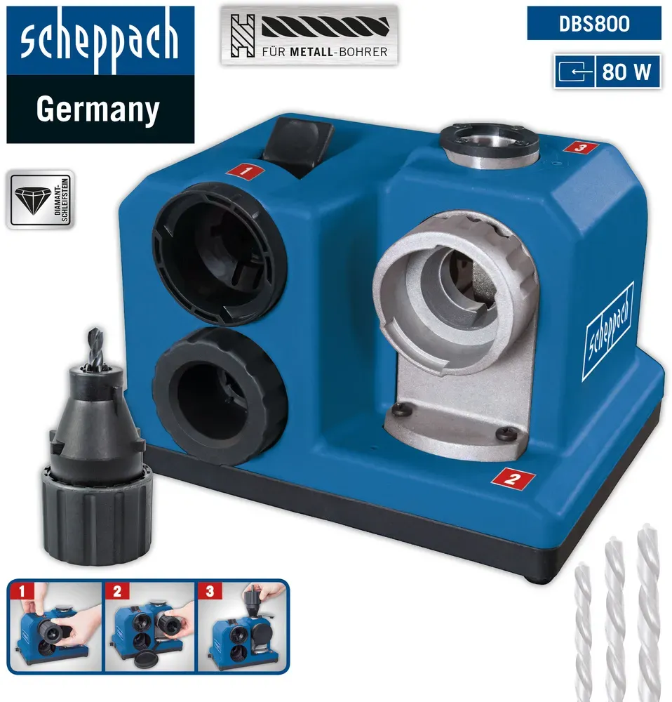 Zustand: Neu - Bohrersets - Scheppach - DBS800 - EAN: 4046664063957 - schärft stumpfe Bohrer in nur drei einfachen Schritten es lassen sich Spiralbohrer mit einem Spitzenwinkel von 118° schärfen diamantbestückte Schleifscheibe sorgt für perfekte und gut geschärfte Ergebnisse Diamantschleifstein mit langer Lebensdauer geeignet für die gängigsten Metallbohrer in den beliebtesten Größen - Verkäufer: sparfuchs24 im amazon.de Marketplace ![]() ![]() Scheppach DBS800 Schleifgerät Bohrerschleifgerät | 80 W Leistung | Diamantschleifstein mit langer Lebensdauer | HSS-Bohrern 3 13 mm