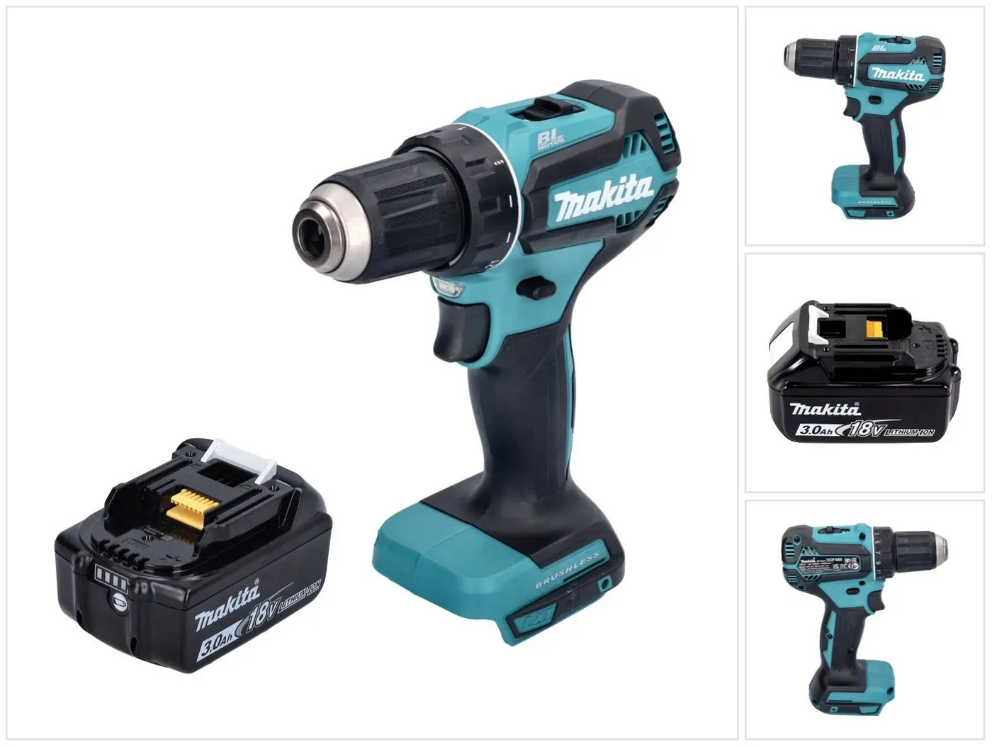 6 Händlerangebote bei billiger.de - Kategorie: Akkuschrauber - Makita - Lieferumfang: - 1x Makita DDF 485 Akku Bohrschrauber - 1x Makita BL 1830 B 18 V 3,0 Ah Akku ( 197599-5 ) - ohne Ladegerät Produktbeschreibung: Das Elektrowerkzeug ist für Bohren und Schrauben in Holz, Metall und Kunststoff vorgesehen. Der bürstenlose Motor und das Vollmetall-Planetengetriebe sorgen für mehr Ausdauer, längere Lebensdauer und kompaktere Bauweise des Akku-Bohrschraubers. Mit dem Schnellbohrfutter bis 13 mm kann eine Vielzahl von Werkzeugen eingespannt werden. Die 21 Drehmomentstufen plus Bohrstufe passen den Bohrschrauber an das jeweilige Werkstück an. Die leuchtstarke Doppel-LED mit Nachglimmfunktion sorgt für optimale Sichtverhältnisse beim Arbeiten. Der Akku-Bohrschrauber ist durch seine kompakte Bauform ein praktischer Helfer für eine Vielzahl von Anwendungen. Technische Daten: Akkuspannung: 18 V Max. Drehmoment (weich): 27 Nm Max. Drehmoment (hart): 50 Nm Motorart: bürstenlos Leerlaufdrehzahl 1. Gang: 0-500 min-1 Leerlaufdrehzahl 2. Gang: 0-1900 min-1 Max. Bohrleistung (Stahl): 13 mm Max. Bohrleistung (Holz): 38 mm Bohrfutterspannweite: 1,5-13 mm Maße (LxBxH): 169x79x255 mm Gewicht: 1,4 kg Bei gewerblicher Nutzung beachten Sie bitte die Bauvorschriften! - GTIN:4064677053277 Manomano.d e
