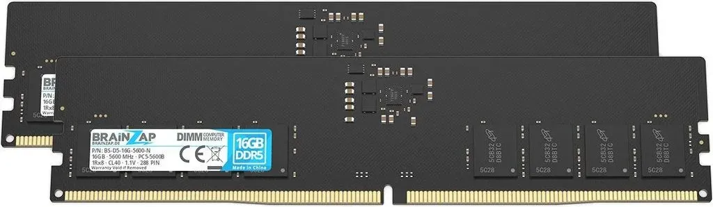 Zustand: Neu - Arbeitsspeicher - Crucial - CT2K16G56C46S5 - EAN: 0649528929983 - 5600MHz RAM can downclock if system specification only supports 5200MHz or 4800MHz Best for 13th Gen Intel Core and AMD Ryzen 7000 Series processors Intel XMP 3.0 and AMD EXPO supported on the same module Enhance productivity, save time and money, game at higher frame rates, multitask better ECC type=non-ECC, Form Factor=SODIMM, Pin count=262-pin, PC speed=PC5-44800, Voltage=1.1V, Rank and Configuration=1Rx8 - bei Amazon.de Dieses BRAINZAP Kit bietet eine günstige 32GB-Lösung für Desktop-PCs. ![]() ![]() BRAINZAP 32GB (2x 16GB) DDR5 RAM UDIMM PC5-5600B 1Rx8 5600 MHz PC5-44800U 1.1V CL40 Computer PC Arbeitsspeicher Desktop