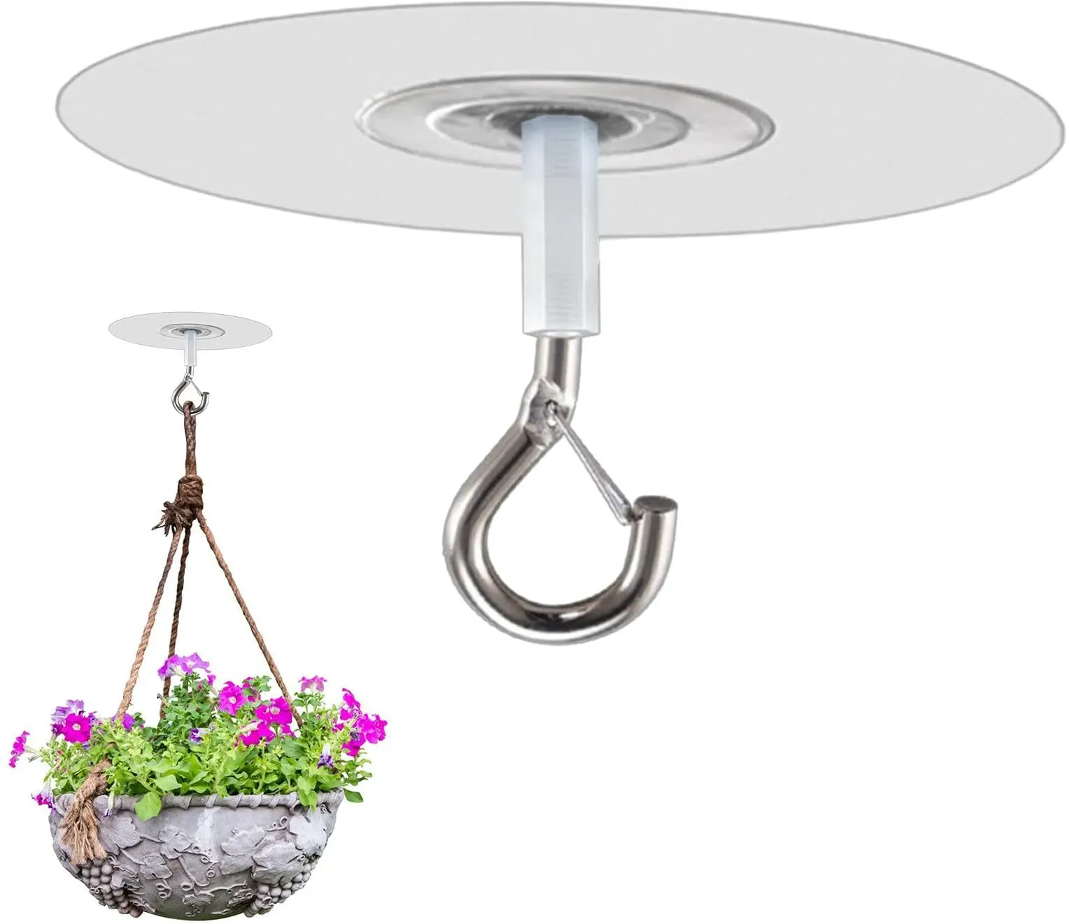 Auf Lager Versand durch AmazonSatiskid 6 Stück Deckenhaken Selbstklebend, Klebehaken Decke Wandhaken Mit Sicherung Ohne Bohren, Schwerlast Deckenhaken zum Aufhängen von Pflanzen Blumentöpfe (Rechteck)