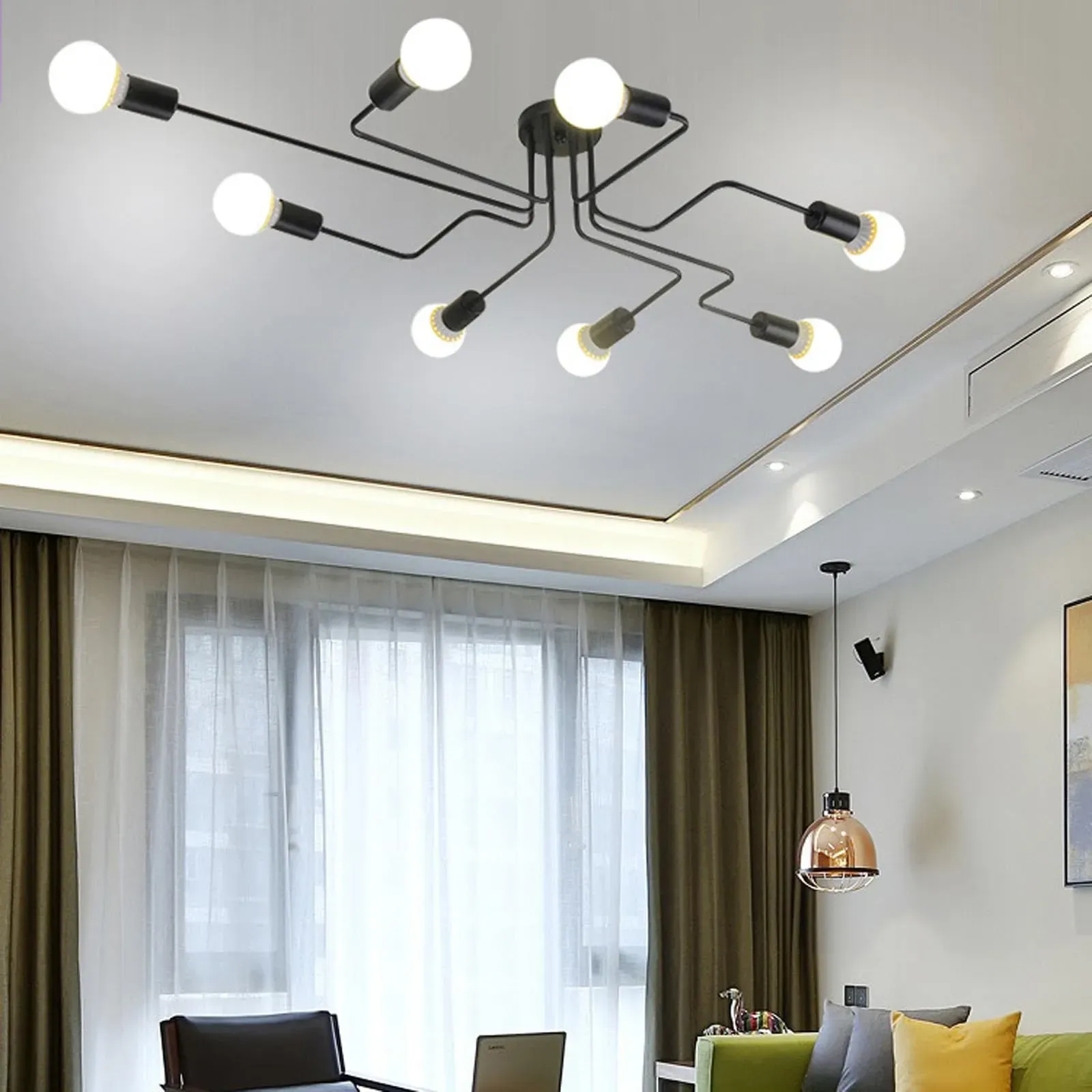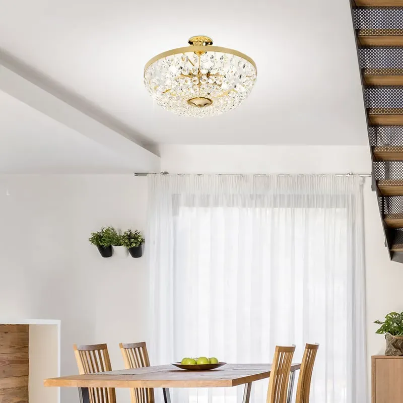 Deckenleuchten Lampen & Leuchten Innenbeleuchtung Deckenleuchten für den Innenbereich Deckenleuchten - EAN:8718881115752 - QAZQA Moderne Deckenleuchte Gold 8-Lichter mit Rauchglas - Athen Die Deckenleuchte Athen ist ein echter Stimmungsmacher! Das Rauchglas verleiht dem Raum eine geheimnisvolle und zugleich gemütliche Atmosphäre. Die 8 Lichtpunkte sind kreisförmig angeordnet, wodurch ein wunderschöner Lichteffekt im Raum entsteht. Die Deckenleuchte ist aus Stahl gefertigt und in Gold mit Rauchglas gehalten. Sie ist 18 cm hoch, 100 cm lang und 66,5 cm breit. Die Montageplatte hat einen Durchmesser von 15 cm und ist 2,5 cm hoch. Die Glasschirme haben jeweils einen Durchmesser von 10 cm. Bestelle acht G9-Leuchtmittel (max. 28 W) dazu, um die Leuchte zu vervollständigen. Um eine zusätzliche Atmosphäre im Raum zu schaffen, kannst du die Deckenleuchte an einen Dimmer anschließen, der nicht im Lieferumfang enthalten ist. Die Athen ist die moderne Deckenleuchte, die in deinem Zuhause nicht fehlen darf. Eine echte Bereicherung! Fassung: 28 . Max 8 x W, 230 V Geeignet für: 28 Spannung: 220V/230V IP-Schutzart: - gefunden von Kelkoo Ein preisgünstiger Sputnik-Kronleuchter im Vintage-Stil mit 8 Flammen, der eine industrielle Ästhetik bietet. ![]() ![]() TZSMUM Vintage Deckenleuchte E27 Basis Sputnik Deckenlampe Indoor 4/6/8 Flammig Deckenleuchten Semi Flush Metall Industrie für Bauernhaus Wohnzimmer und Esszimmer (Schwarz,8)