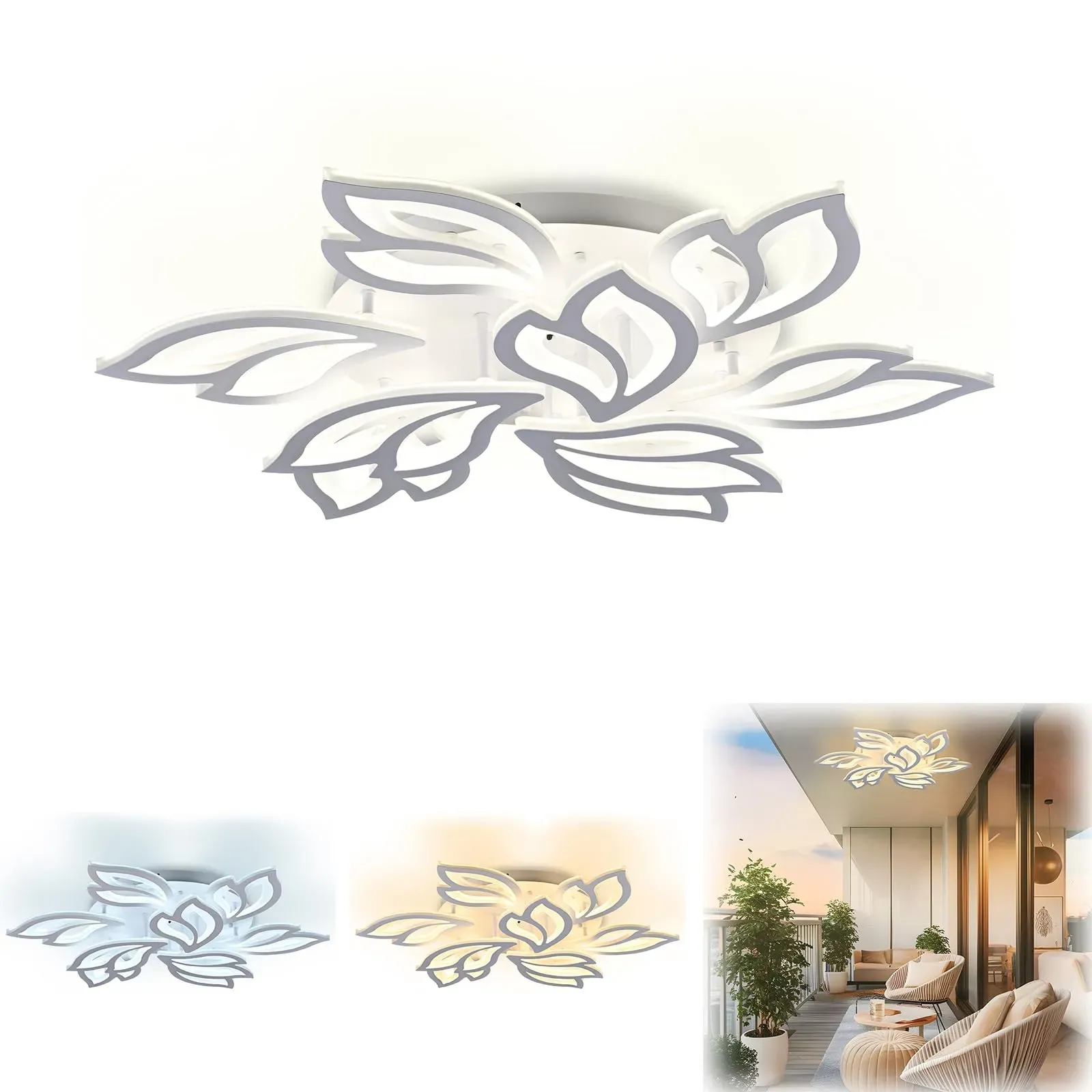 Kategorie: Deckenleuchten - UISEBRT - Dimmbar und Farbtemperatur einstellbar: Deckenleuchte passen Sie die Helligkeit und Farbtemperatur über die Fernbedienung an, um Ihre Bedürfnisse zu erfüllen. Die Helligkeit lässt sich leicht von 10% bis 100% einstellen, und die Farbtemperatur kann von 2800K bis 6500K variieren wählen Sie zwischen kühlem, neutralem oder warmem Licht, um jederzeit die ideale Atmosphäre zu schaffen Memory-Funktion: Die Kronleuchter verfügt über eine Memory-Funktion, die beim Einschalten automatisch die zuletzt eingestellten Lichtparameter wiedergibt. Sie müssen die Wandsteuerung nicht betätigen einfach die Fernbedienung verwenden und die komfortable Beleuchtung beibehalten Einzigartiges Design: Diese Wohnzimmerlampe überzeugt mit ihrem eleganten Blattform-Design und hochwertigem Material. Der robuste Metallrahmen und die hochdichte Acrylplatte sorgen für Korrosionsbeständigkeit, Rostschutz und Langlebigkeit. Ein schlichtes und stilvolles Design, das Ihrem Zuhause eine besondere Note verleiht IP44 staubdicht und leicht zu reinigen: Mit der IP44-Schutzklasse schützt die Deckenleuchte effektiv vor Staubansammlungen und verhindert das Eindringen von Insekten. Dies gewährleistet eine einfache Reinigung und Pflege, sodass Ihre Beleuchtung stets hygienisch bleibt Vielseitige Anwendung und komfortable Beleuchtung: Die Schlafzimmer lampe verwendet hochwertige LED-Technologie, die gleichmäßiges, flimmerfreies Licht liefert und die Augenbelastung verringert. Sie ... Diese RUYI Modern LED Deckenleuchte ist mit 98,59 Euro eine dimmbare 9-Ring-Deckenleuchte mit Fernbedienung und hoher Leuchtkraft. ![]() ![]() RUYI Modern LED Deckenleuchte Dimmbar mit Fernbedienung 9-Ring Deckenleuchte 120W 10800LM, Deckenlampe für Wohnzimmer, Schlafzimmer, Küche, Flur, Balkon, Esszimmer, Weiß, 2800-7000K