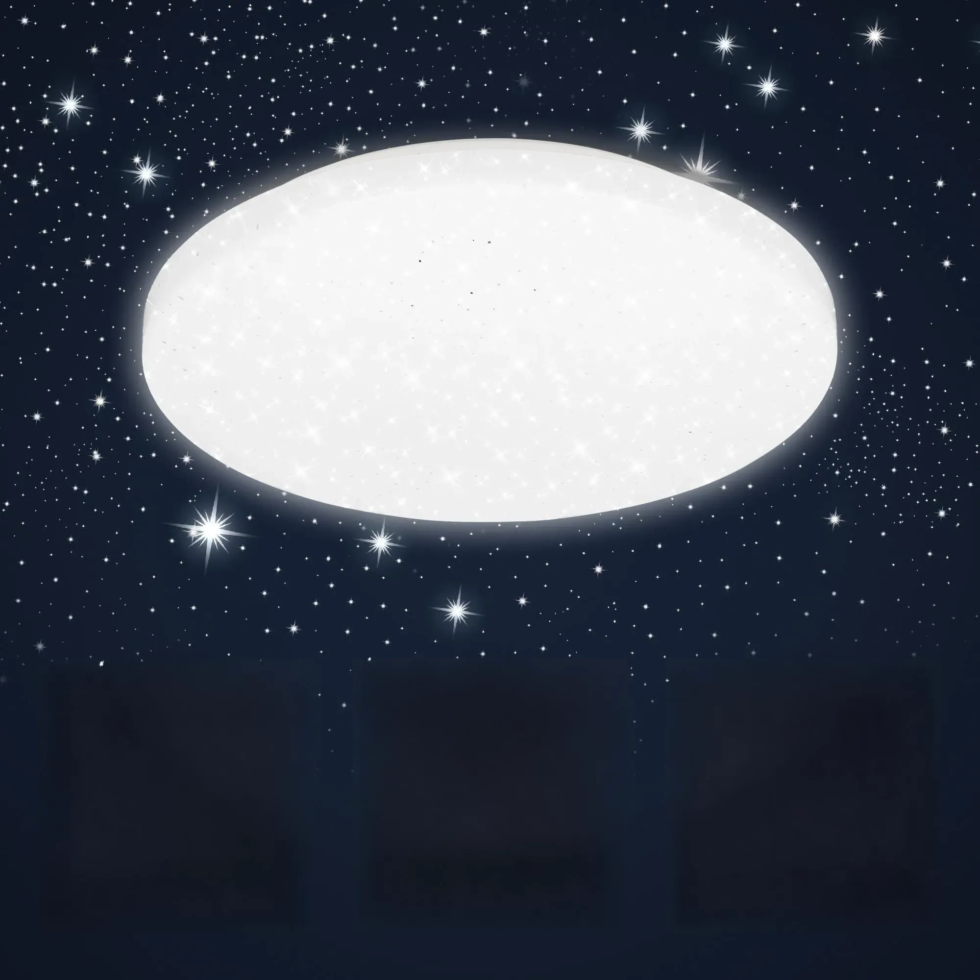 Kategorie: Deckenleuchten - ExtraStar - Produktinformationen Marke: EXTRASTAR; Fassung: LED Deckenleuchte; Größe:17*17*3.6cm; Leistung:12W; Lumen:1320lm; Farbtemperatur: 3000K; Helle Farbe:Weiß; CRI 80+ Die LED Deckenleuchte kann die meisten Bereiche des Raumes beleuchten. Hohe Lichtausbeute, Energieeinsparung von 85%. äquivalent zu herkömmlichen 89W Halogenstrahlern.Einschalten, kein Brummen oder Geräusch während der Arbeit. Langlebige LED-Deckenleuchte, benutzerfreundliches Design Mit einer Lebensdauer von 20.000 Stunden muss die LED-Deckenleuchte nicht häufig ausgetauscht werden, keine Notwendigkeit, sie an das Erdungskabel anzuschließen. Einfache Installation und breite Anwendung : Mit einem einfachen und ordentlichen Design, heller und natürlicher weißer Farbe, ist die LED-Deckenleuchte die ideale Beleuchtungswahl für Büro, Flur, Küche, Balkon, Badezimmer, Schlafzimmer, Wohnzimmer, Treppen, Hotel usw. Die Installation ist so einfach wie das Anschließen des Kabels und das Anschrauben der Leuchte an die Decke ohne zusätzliches Werkzeug oder Personal. Warmweiß 3000 Kelvin Lampe und LED Deckenleuchte mit hohem CRI : Ra 80. Mit dem satinierten Ton mit hoher Durchlässigkeit, kein Schatten, weiches und gleichmäßiges Licht, gut für die Augen. Schneller After-Sales-Service Was Sie bekommen: 3000 Kelvin warm-gelbe Lampe, Schrauben, Installationsanleitung. Schnelle Antwort auf jede Anfrage, einfach in den Warenkorb legen und uns kontaktieren. - 9,99 Euro bei Amazon Marketplace ... Eine preiswerte Bad-Deckenleuchte mit Sternenhimmel-Effekt und integriertem LED-Licht. ![]() ![]()