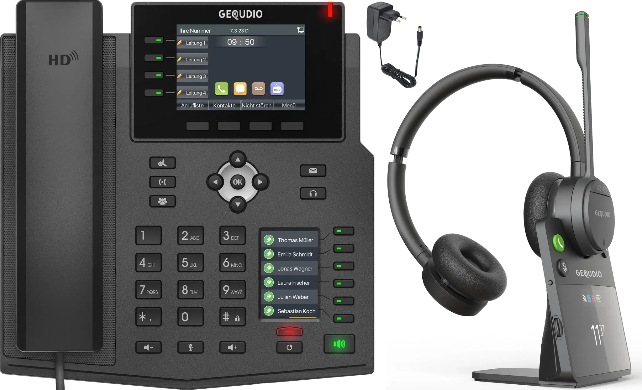 Kategorie: Telefon-Headsets - Snom - GTIN:4262377561362 - SCHNURLOSES DECT-HEADSET - Das Snom A170 DECT-Headset bietet eine kabellose Verbindung zu Ihrem Fritz Fon C6, Gigaset Telefon oder Jabra Headset und ist kompatibel mit Snom-Tischtelefonen der D7xx- und D3xx-Serie ANSCHLUSS AN SNOM-TELEFON ODER PC - Verbinden Sie das A170-Headset einfach mit Ihrem Jabra Evolve2 65, schnurlosen Telefon oder DECT Telefon Fritzbox kompatibel Gerät, um kristallklare Audioqualität bei Telefonaten oder Videoanrufen zu genießen GERäUSCHUNTERDRüCKUNG UND BREITBANDLAUTSPRECHER - Das passive Mikrofon mit Geräuschunterdrückung und Breitbandlautsprecher ermöglicht störungsfreie Kommunikation, ideal für die Nutzung mit Ihrem Fritzfon, Fritz DECT 200 oder Jabra Elite 7 Pro OMFORTABLES TRAGEN UND EHS-FUNKTIONALITäT - Dieses Headset kabellos verfügt über drei Tragevarianten für optimalen Komfort und ist mit einem Bewegungsradius von bis zu 25m ausgestattet. Genießen Sie zusätzliche EHS-Funktionalität bei Bedarf AUSTAUSCHBARE BATTERIE - Der leistungsstarke Akku des Snom A170 DECT-Headsets lässt sich während eines Gesprächs austauschen, sodass Sie auch bei langen Telefonaten immer in Verbindung bleiben - perfekt für Ihr Gigaset Telefon oder Fritzfon - 176,24 Euro bei Amazon Marketplace CE - gefunden von billiger.de Das GEQUDIO IP Telefon GX5+ Set ist eine umfassende Lösung mit Netzteil und DECT Headset, kompatibel mit Fritzbox und Telekom. ![]() ![]() GEQUDIO IP Telefon GX5+ Set mit Netzteil & DECT Headset mit Basisstation - Fritzbox, Telekom kompatibel - Kabelloses ANC-Headset Deutsche Anleitung (PDF) für Fritz Box, Sipgate, Telekom Speedport