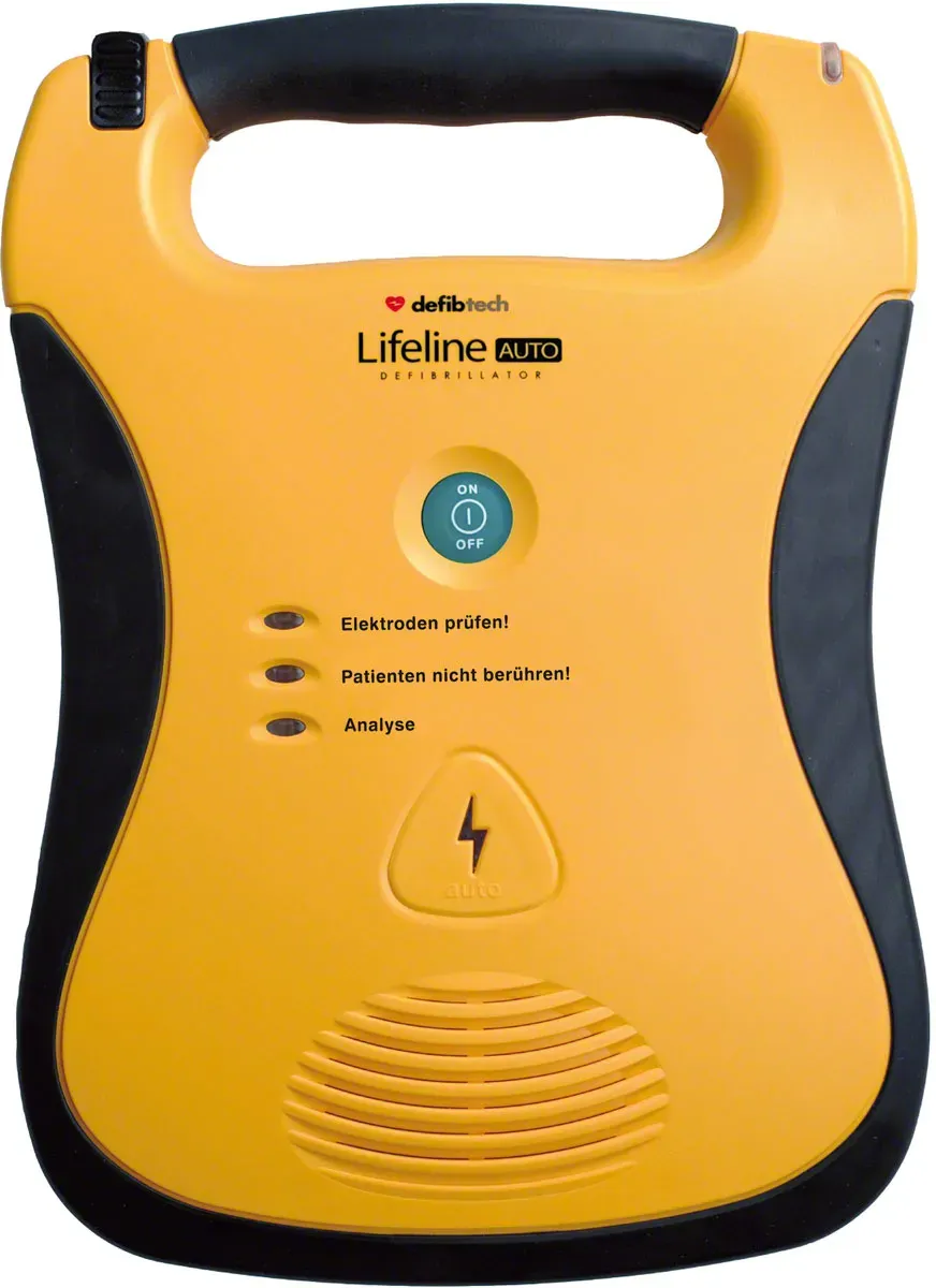 Kategorie: Erste Hilfe - Defibtech - GTIN:4055091040929 - Defibtech Defibrillator Lifeline AED, Vollautomat. Der Defibrillator Lifeline AED Vollautomat ist besonders einfach zu bedienen und kann innerhalb von Sekunden verwendet werden. Ein besonders smartes und preisgekröntes Design mit nur einer Anschalttaste ermöglicht eine schnelle und korrekte Bedienung. Der Defibrillator führt mit einer ruhigen und klaren Sprachansage durch die komplette Herz-Lungen-Wiederbelebung. Die Elektroden sind immer angeschlossen und werden auf der Rückseite aufbewahrt. Der Lifeline AED Vollautomat ist stoß- und spritzwassergeschützt (IP54). Hierdurch ist er besonders robust und hält auch Stürze von bis zu 1 m problemlos aus. Kritische EKG-Segmente und Rettungsparameter werden aufgezeichnet und können bei Bedarf auf eine optionale Datenkarte gespeichert werden. Durch tägliche Selbsttests wird Funktionssicherheit gewährleistet. Eine gut sichtbare Leuchtanzeige signalisiert, dass der Defibrillator in Ordnung und einsatzbereit ist. Produkteigenschaften: Vollautomatischer Defibrillator Impulsform: biphasisch oder exponentiell mit abgeschnittenen Rückflanken Sprachausgabe in Deutsch Metronom zur Herz-Lungen-Wiederbelebung Kapazität: 300 Schocks oder 16 h Dauerbetrieb Bis zu Standby Zeit Interner Speicher: kritische EKG-Segmente und Rettungsparameter können auf Datenkarte übertragen werden Technische Daten: Energie: bei Erwachsenen 150 Joules, bei Kindern 50 Joules Ladedauer: 6 sec. Batterie: ... Dieser vollautomatische Defibrillator mit Display bietet zusätzliche visuelle Anweisungen, was die Bedienung in Stresssituationen erleichtern kann. ![]() ![]() Defibtech Defibrillator Lifeline VIEW AED mit Display, Vollautomat