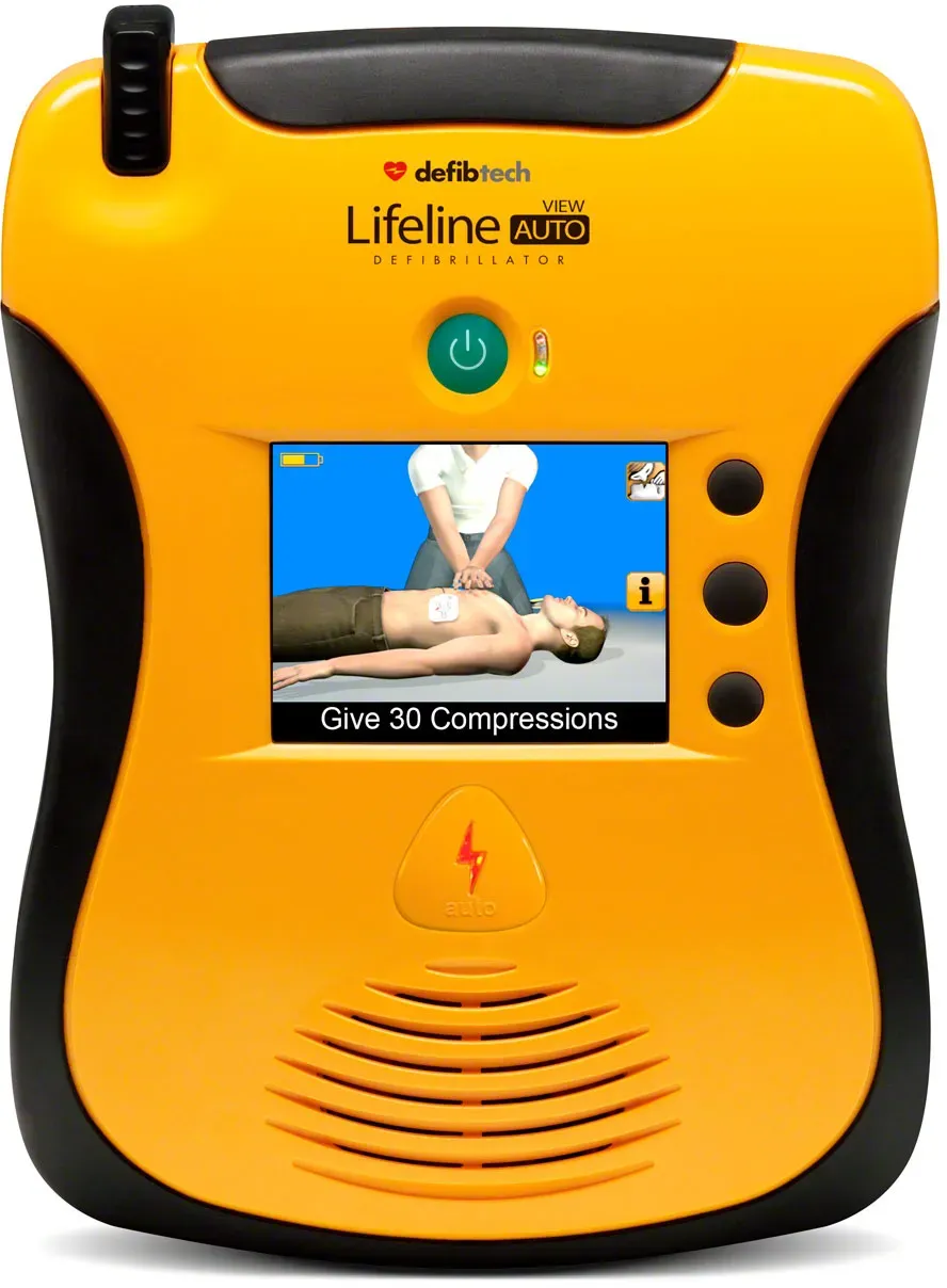Kategorie: Erste Hilfe - Defibtech - GTIN:4055091221960 - Defibtech Defibrillator Lifeline VIEW AED mit Display, Vollautomat. Der Defibrillator Lifeline VIEW AED Vollautomat ist schnell einsatzbereit und führt vollautomatisch durch die Herz-Lungen-Wiederbelebung. Besonders einfach zu bedienen dank smartem Design, verfügt der Defibrillator über nur einer Taste. Mit ruhiger und klarer Sprachausgabe kombiniert mit Videoanweisungen führt er Schritt für Schritt durch die gesamte Herz-Lungen-Wiederbelebung. Die Elektroden sind immer angeschlossen und werden auf der Rückseite aufbewahrt. Der Lifeline VIEW AED Vollautomat ist stoß- und spritzwassergeschützt (IP54). Deshalb ist er besonders robust und hält auch Stürze aus bis zu 1 m problemlos aus. Kritische EKG-Segmente und Rettungsparameter werden aufgezeichnet und können bei Bedarf auf eine optionale Datenkarte gespeichert werden. Durch tägliche Selbsttests wird Funktionssicherheit gewährleistet. Eine gut sichtbare Leuchtanzeige signalisiert, dass der Defibrillator in Ordnung und einsatzbereit ist. Produkteigenschaften: Vollautomatischer Defibrillator Mit Sprachausgabe Impulsform: biphasisch oder exponentiell (impedanzangepasst) Interaktives LCD-Display Kapazität: 125 Schocks oder 8 h Dauerbetrieb Ergonomisches Smartdesign Bis zu n Standby Zeit Interner Speicher: bis zu 60 min. Aufzeichnung Technische Daten: Energie: bei Erwachsenen 150 Joules, bei Kindern 50 Joules Ladedauer: 4 sec. Batterie: Lithium-Mangandioxid (nicht ... Dieser halbautomatische Defibrillator ist eine solide Wahl für Ersthelfer und bietet eine gute Balance zwischen Automatisierung und Kontrolle. ![]() ![]()
