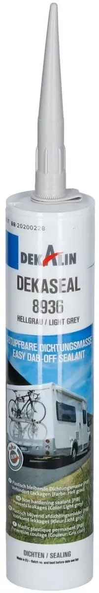Verfügbarkeit: Versand in 1-3 Werktage - 42,10 €/l - Kategorie: Aromatherapie - Dekalin - GTIN:4046085625024 - Dekaseal 8936 von Dekalin ist der Klassiker unter den Dichtungsmassen. Die abtupfbare Dichtungsmasse besticht durch hohe Dichtigkeit, UV-Beständigkeit... - 13,05 Euro bei Offgridtec - gefunden von billiger.de Die günstigste 310ml Kartusche in Dunkelgrau, gut für den Einstieg oder kleine Reparaturen. ![]() ![]() Dekalin Dekaseal 8936 Abtupfbare Dichtungsmasse Dunkelgrau 310 ml