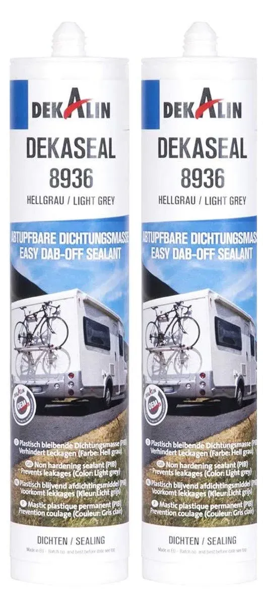 Verfügbarkeit: Auf Lager - Kategorie: Caravan-Zubehör - Dekalin - GTIN:0700811536513 - Dicht gehalten. Das Dichtmittel Dekalin Dekaseal ist ein Muss auf Reisen mit dem Wohnmobil/Camper/Caravan. Ob Windschutzscheibe, Rahmen, Dachfenster, Fenster, Abläufe, Strips, Dächer oder Serviceklappe: das Kitt behält auch bei größten Temperaturschwankungen (einsetzbar von -30 bis +100°C!) seine Elastizität und dichtet zuverlässig kleinere Zwischenräume ab. Wir empfehlen Dekalin Dekaseal insbesondere für die Abdichtung von Kurbeldachhauben ? nicht zuletzt auch deswegen, weil sich der überschuss leicht und rückstandsfrei abtupfen lässt. Geeignet für: Windschutzscheiben, Rahmen, Abläufe, Strips, Dächer, Luken - Inhalt: 310 ml - Temperatur: ab -30°C bis +100°C - Farbe: hellgrau - Material: Polysobuten Substrate: Lacke, Aluminium, ABS, PMMA, Holz Hinweis: Nicht lackierbar - 36,91 Euro bei Amazon Marketplace Automotive - gefunden von billiger.de Ein 2er-Pack vom Hersteller ATP Autoteile, der eine gute Option für den regelmäßigen Gebrauch darstellt. ![]() Dekalin 2x Abtupfbare Dichtungsmasse Dekaseal 8936 [Hersteller-Nr. 9944003]