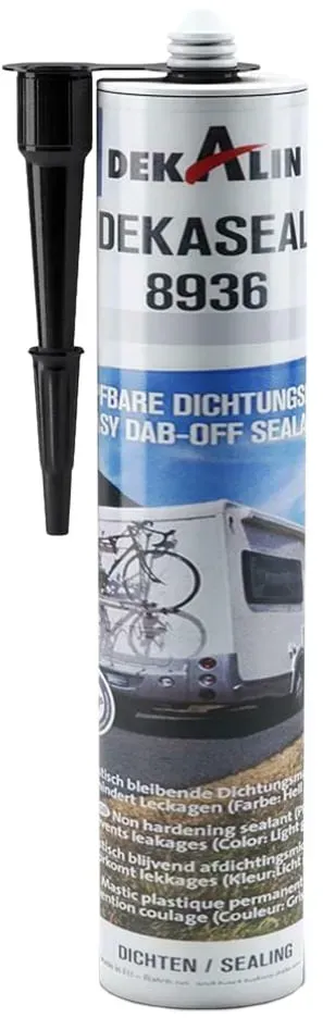 Verfügbarkeit: Lieferbar in 1-2 Werktagen - 43.55 €/l - Kategorie: Caravan-Zubehör - Dekalin - GTIN:4046085625017 - Abtupfbare Dichtungsmasse Dekalin Dekaseal 8936 ist der Klassiker unter den Dichtungsmassen, ideal zur Abdichtung von Fenstern und Serviceklappe gegen Auswirkungen von Feuchtigkeit in Reisemobilen und Wohnwägen. Dekaseal besticht durch hohe Dichtigkeit, UV-Beständigkeit sowie Elastizität, da sie nicht aushärtet. Das Kit bleibt elastisch, ist resistent gegen Temperatureinflüsse und lässt sich leicht ohne Rückstande entfernen. Für die Anwendung wird eine Hand- oder Drucklusftpistole benötigt. Details: - Sehr niedrige Wasserdampfpermeabilität (0,1 €“ 0,2 Gramm/Tag/m²) - Leichte Reinigung durch Abtupfen - Sehr gute UV-Beständigkeit und Alterungsbeständigkeit, bewährte Qualität - Dichtstoff muss zwischen einer mechanischen Verbindung befestigt werden - Mit breitem Haftspektrum - 13,50 Euro bei Fritz-Berger - gefunden von billiger.de Dieses Angebot bietet eine größere Menge (560 ml) in Schwarz zu einem guten Preis, ideal für größere Flächen. ![]() ![]() Dekalin Dekaseal 8936 Abtupfbare Dichtungsmasse Schwarz 560 ml