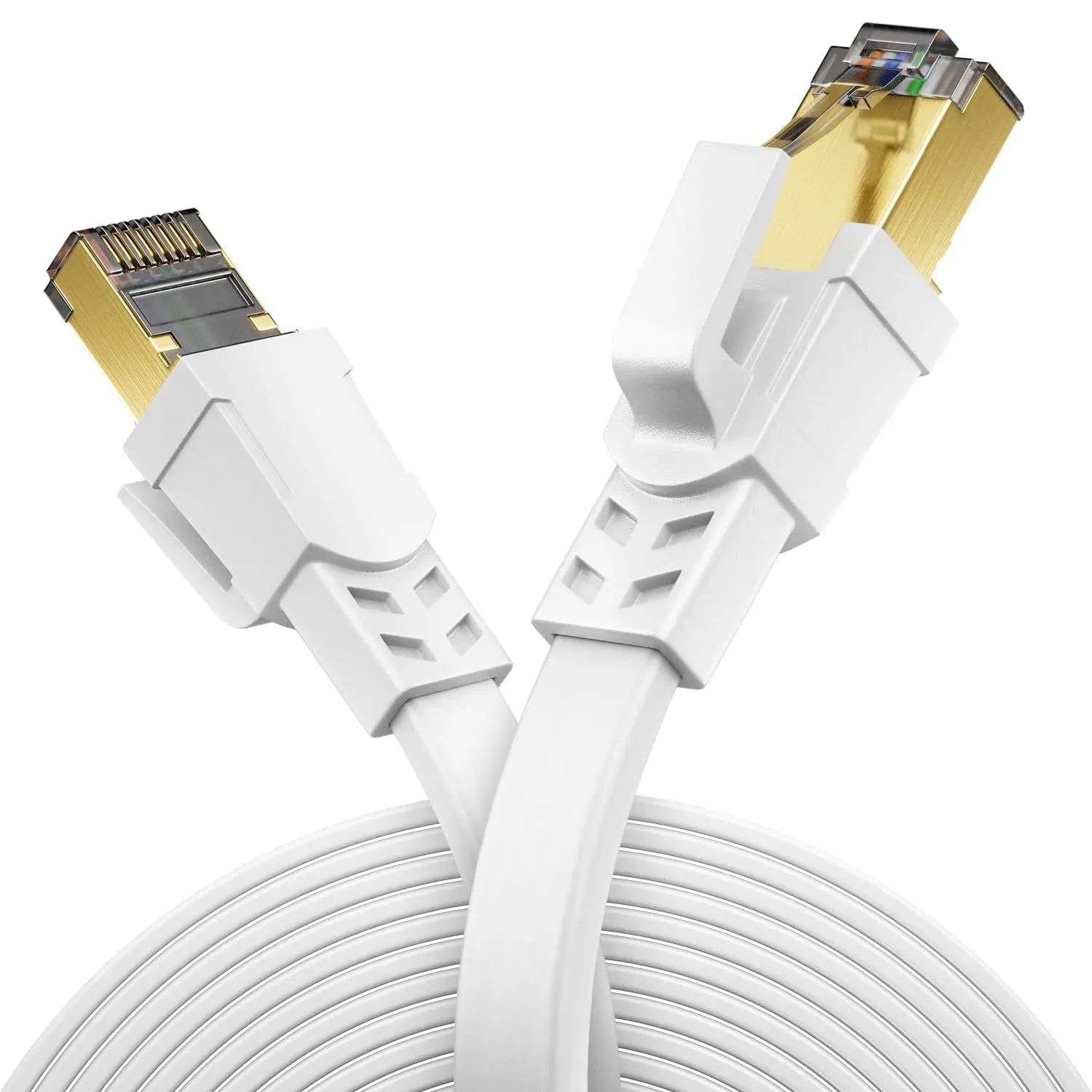 Auf Lager Versand durch AmazondeleyCON 15m CAT8.1 Flaches LAN Kabel Netzwerkkabel Kupferleiter 40 Gbit 2000 MHz Patchkabel Gigabit Ethernet Cable RJ45 Stecker LAN DSL CAT.8 Kabel - Weiß