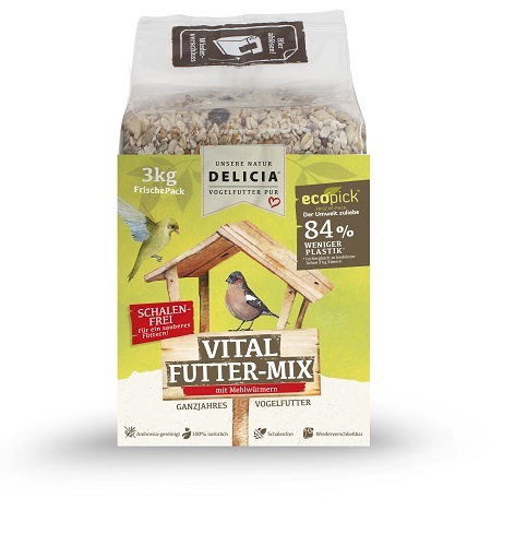 EAN: 4013441105872 - Ergänzungsfuttermittel für freilebende Gartenvögel. Heimische Vögel verlieren durch die zunehmende dichte Bebauung ihren natürlichen Lebensraum. Dies hat nicht nur in den Wintermonaten gravierende Auswirkungen, denn aufgrund der Erderwärmung fliegen schon jetzt viele Vögel nicht mehr gen Süden. Insbesondere im Frühling, zur Brutzeit und Jungvogelaufzucht, sind sie auf energiereiche Nahrung angewiesen. Vielfältige, reichhaltige Futteroasen im eigenen Garten sorgen bei Delicia-Kunden somit nicht nur für Vergnügen beim Beobachten eifriger Rotkehlchen, Kohlmeisen und Spechte, sie tragen vor allem aktiv zum Vogelschutz und somit zum Erhalt der Artenvielfalt bei. GartenVogelfutter unterliegt unweigerlich einer chemi schen Ver änderung. Diese ist zurück zuführen auf Mikro organismen, Tempera turen, Enzyme, Insektenbefall und Lufteinfluss. Der in der Luft enthaltene Sauerstoff ist einer der Hauptgründe für das Verderben von Garten Vogelfutter. Wenn dieses mit Sauerstoff in Kontakt kommt, entstehen Oxidationsprozesse. Dadurch verliert Garten Vogelfutter an Nährwert, Substanz, Geschmack und Qualität. Das ecopick VakuumPack verhindert das Verderben von Garten Vogelfutter, welches auf chemische Prozesse zurückzuführen ist, mit folgenden Vorteilen: Dank des ecopick VakuumPacks können Ihre Garten vögel das frische Futter hieraus das ganze Jahr genießen. Sie können viel Geld sparen, indem Sie preiswert in größeren Mengen einkaufen können, wegen der langen ... ![]() ![]() DELICIA® Vogelfutter Vital FutterMix (3kg) · Ganzjahresfutter für Wildvögel & Gartenvögel · Im wiederverschließbaren FrischePack · Streufutter für jeden Vogel · Vogelfutter ganzjährig