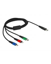 Delock - EAN: 4043619865963 - Dieses 3 in 1 Ladekabel von Delock dient zum Aufladen diverser Geräte, wie z. B. Tablets oder Smartphones mit Lightning , Micro USB-B oder USB Type-C Anschluss über eine USB Stromquelle.Praktischer BegleiterDas Kabel ist der ideale Begleiter für unterwegs, z. B. auf Dienstreisen oder im Urlaub, da es die drei gängigsten Anschlüsse für aktuelle Mobilgeräte in einem einzigen Kabel vereint. Somit wird lästiger Kabelsalat sowie unnötiges Herumtragen unzähliger Kabel vermieden.Qualität und LeistungDas Kabel ist, aufgrund seiner robusten Textilummantelung, starken Zugentlastung und Metallgehäuse an allen Kabelenden, sehr strapazierfähig und langlebig. Der hohe Drahtquerschnitt von 22 AWG unterstützt zudem eine stabile Stromversorgung von bis zu 3 A.Spezifikation Anschlüsse: 1 x USB 2.0 Type-C Stecker 1 x 8 Pin Apple Lightning Stecker 1 x USB Typ Micro-B Stecker 1 x USB Type-C SteckerUnterstützt nur die LadefunktionMaximale Ausgangsstromstärke: USB Typ Micro-B / USB Type-C : 3 A Lightning : 2,5 ASpannung: max. 5 VDrahtquerschnitt: 22 AWGVerzinnte KupferleitungenKabel mit TextilummantelungAnschlüsse mit MetallgehäuseFarbe: schwarz / rot / blau / grünLänge inkl. Anschlüsse: ca. 1 mSystemvoraussetzungen Stromquelle mit einem freien USB Type-C PortPackungsinhalt KabelVerpackung Wiederverschließbare Tüte - bei reichelt.de - aus Yadore Produktdaten ![]() ![]() Delock USB-Ladekabel USB 2.0 USB-C Stecker, USB-C Stecker, USB-Micro-B Stecker, Apple Lightning Stecker 1.00m Schwarz 86596