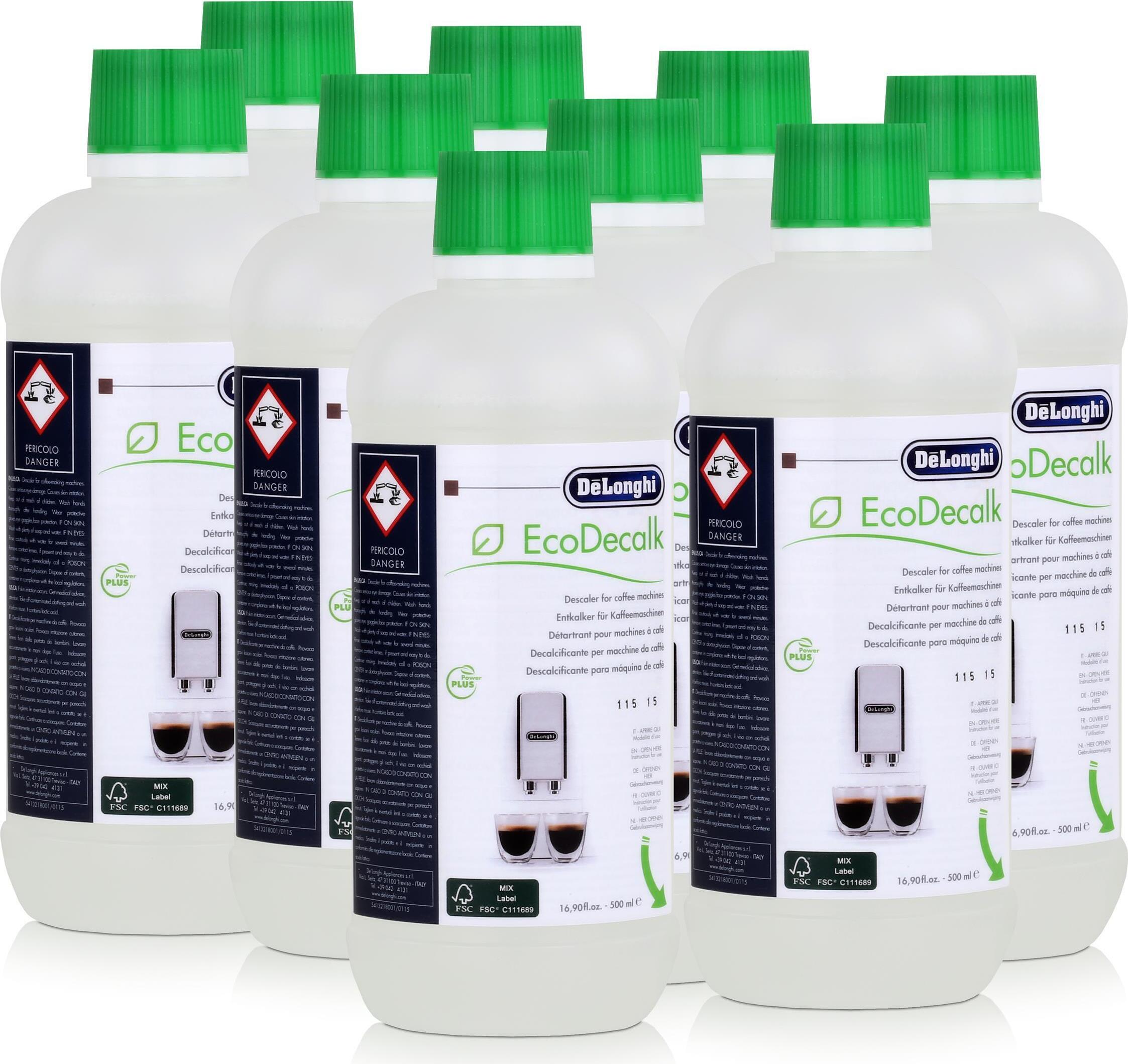 Zustand: Neu - 65,64 € / l - Entkalker Entkalkung & Reinigung für Kaffee- & Espressomaschinen - De'Longhi Delonghi - localization_B01D2YLZMW - EAN: 0737356455948 - Die Entkalkerlösung enthält ausschließlich natürliche und hochqualitative Rohstoffe pflanzlichen Ursprungs (Milchsäure), die biologisch abbaubar und nicht umweltschädlich sind Labortests beweisen, dass er Kalkablagerungen bis zu dreimal wirksamer und schneller löst, als herkömmliche Entkalker Kaffeevollautomaten entkalken mit dem zu 100 % umweltfreundlichen Entkalker EcoDecalk von De'Longhi Die 500ml-Verpackung reicht für 5 Entkalkungsvorgänge Inhalt je: 500ml - Verkäufer: Digital-versand-de-Online-GmbH im amazon.de Marketplace Ein 3er-Set, das eine gute Menge für den regelmäßigen Gebrauch zu einem vernünftigen Preis bietet. ![]() Manomano.d e Ersatzteil - Set 3 Entkalkern 500 ml ECODECALK - - DELONGHI, BEKO