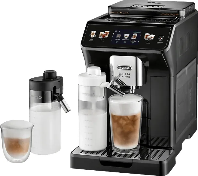 DeLonghi - EAN: 8004399026209 - Entdecke eine endlose Auswahl an kreativen Kaffeerezepten für heiße und kalte Getränke, darunter Cold Brews. - bei delonghi.com - aus Yadore Produktdaten Dieses Angebot direkt vom Hersteller DeLonghi bietet die ECAM450.86.T in Titan, was eine hochwertige Option darstellt. ![]() Delonghi De'Longhi Eletta Explore, Titan ECAM450.86.T EX:4 Titan