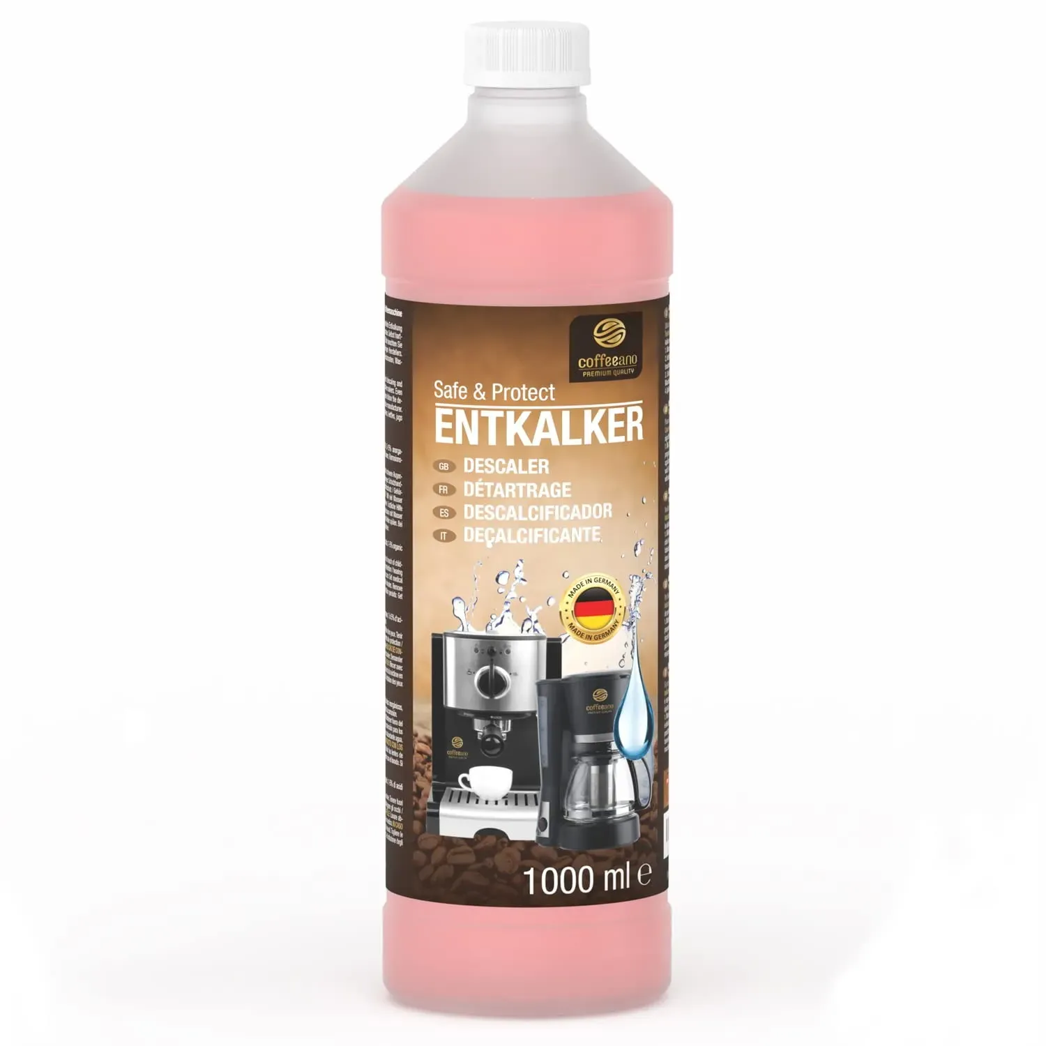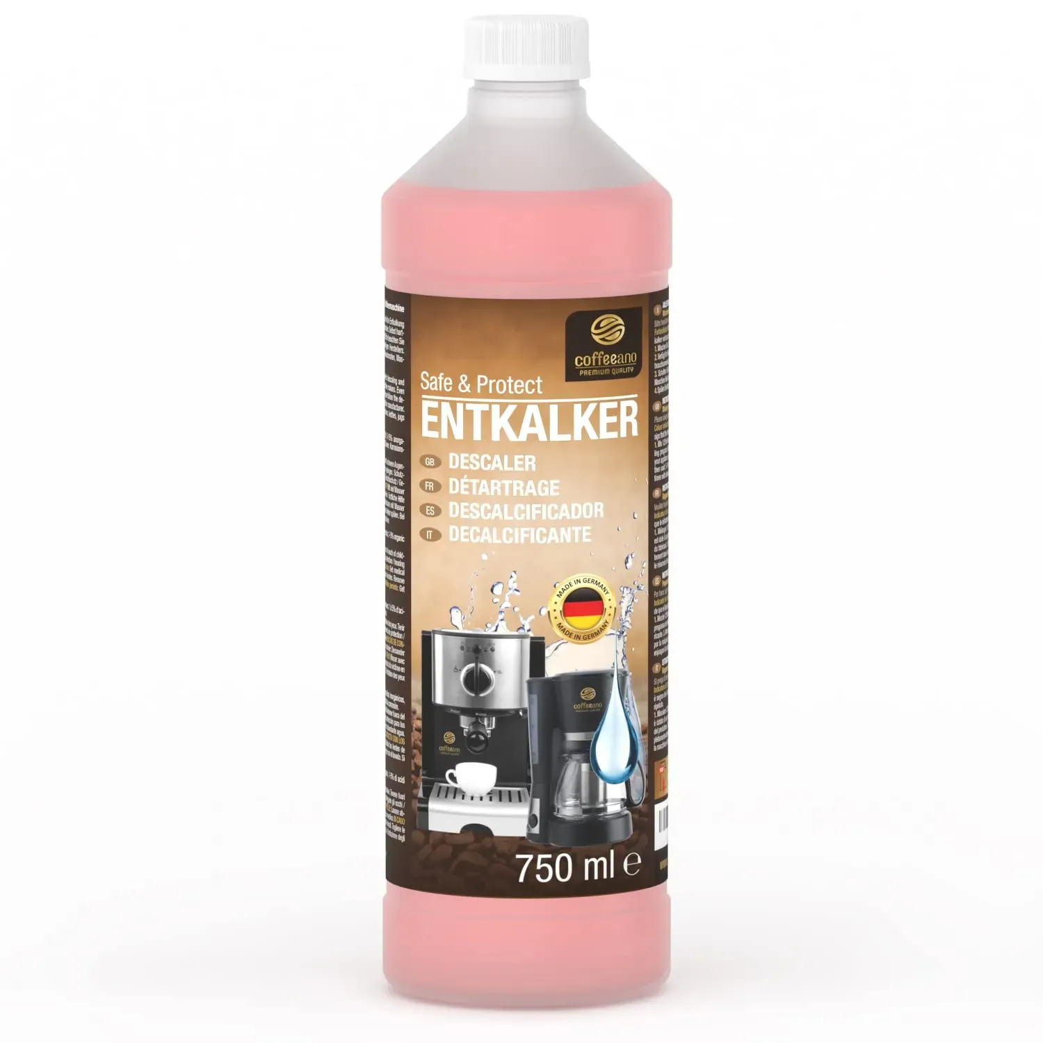 Verfügbarkeit: Auf Lager - Kategorie: Kaffeezubehör & Espressozubehör - Coffeeano - GTIN:9120085720172 - LIEFERUMFANG: 750ml Entkalker für 6 Anwendungen, benutzerfreundliche PDF Anleitung zum Download und per QR-Code + Support bei allen Fragen zur Anwendung. FüR ALLE GERäTE & HERSTELLER: Delonghi, Siemens, EQ Series, Jura, Miele, Nivona, Krups... Für Kaffeevollautomaten, Kaffeemaschinen, Padmaschinen, Kapselmaschinen, Siebträger, Espressomaschinen. OPTIMALER ANTI-KALK-SCHUTZ: Mit der hochwirksamen, auf Kaffeemaschinen abgestimmten SAFE & PROTECT Entkalkungsformel werden alle Spuren von Kalk rückstandsfrei entfernt und Gummidichtungen geschont. PERMA-SEAL-EFFEKT: Die Safe&Protect Formel sorgt für eine besonders glatte Oberfläche, sodass Kalk, Verschmutzungen und Ablagerungen nicht mehr haften. Das verlängert die Lebensdauer des Geräts. MADE IN GERMANY: Premium Entkalker für Kaffeemaschinen, entwickelt und hergestellt in Deutschland zum Schutz Ihres Gerätes, mit benutzerfreundlicher PDF Anleitung und schnellem Kundenservice. - 11,99 Euro bei Amazon Marketplace Kitchen - gefunden von billiger.de Der Wessper Entkalker mit 1 Liter ist eine kostengünstige Alternative, die mit vielen Kaffeemaschinen kompatibel ist. ![]() ![]() Wessper Entkalker, 1l, für hochwertige Kaffee-und Espressomaschinen, Wasserkocher und Küchengeräte ohne säureempfindliche Oberfläche, kompatibel mit Delonghi, Saeco, Nespresso, Jura, Siemens, uvm