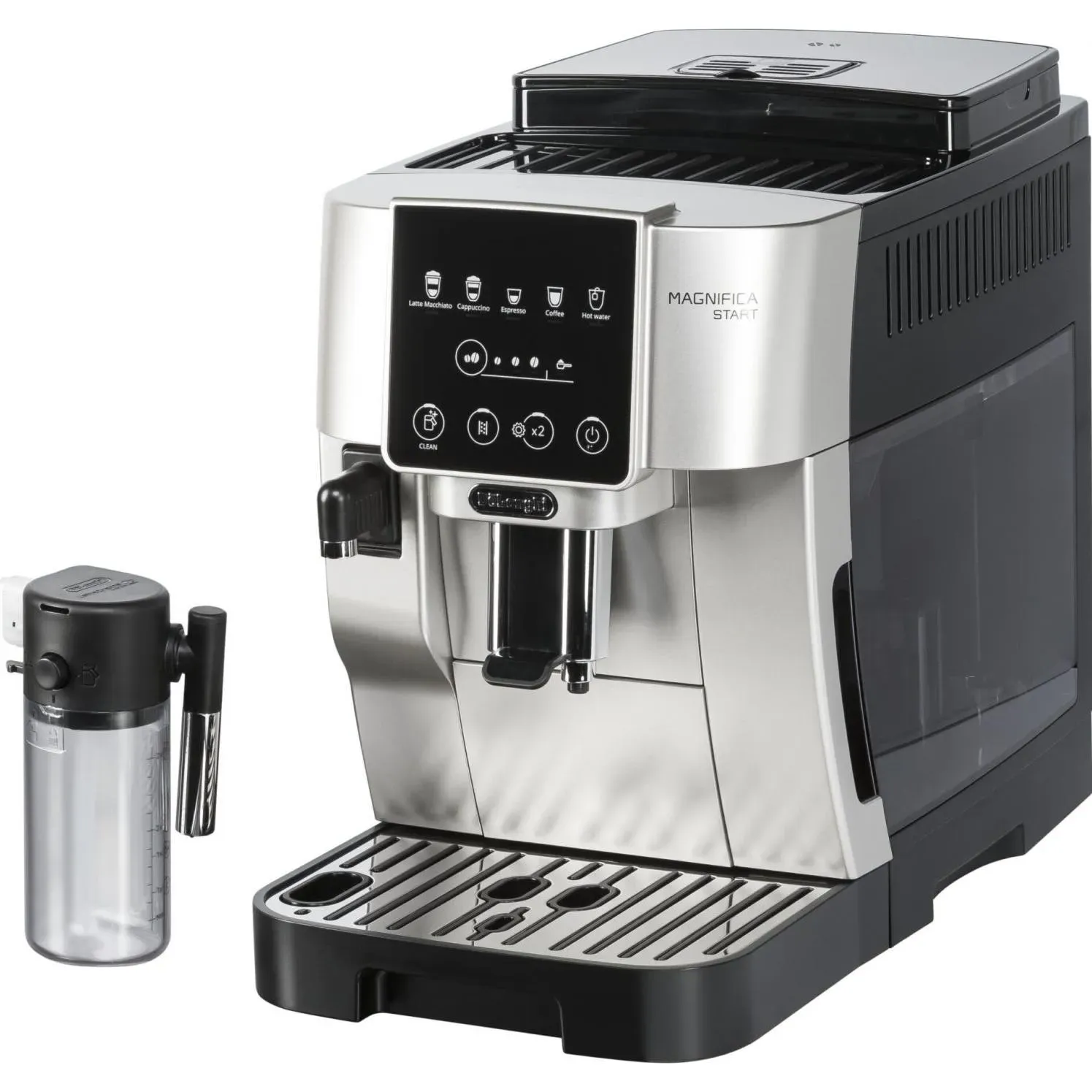 18 Händlerangebote bei billiger.de - Kategorie: Kaffeevollautomaten - De'Longhi - Die Magnifica S Smart ECAM 250.23.SB von DeLonghi ist ein Kaffeevollautomat der Extraklasse. Nach dem Einschalten benötigt die Maschine ca. eine Minute zum Erhitzen, anschließend kann man sich auch gleich schon den ersten Kaffee zubereiten. Der Automat ist sehr leicht zu bedienen, der Wassertank kann ganz einfach nach vorne entnommen und befüllt werden. Der Bohnenbehälter mit Aromaschutzdeckel befindet sich oben, genauso wie auch der Kaffeepulverschacht. Der Mahlgrad sowie die Kaffeemenge und -stärke können einfach eingestellt werden. Die integrierte Milchaufschäumdüse ermöglicht zudem die Zubereitung von traditionellem Milchschaum oder heißer Milch für zusätzlichen Kaffeegenuss. Sobald eine Entkalkung nötig ist, wird es angezeigt und man kann mit wenigen Handgriffen ein Entkalkungsprogramm abspielen lassen, das nach ca. einer halben Stunde abgeschlossen ist. - GTIN:8004399334120 Dieses Modell der Magnifica Start Milk Serie bietet eine integrierte Milchfunktion für Liebhaber von Milchkaffeegetränken. ![]() ![]() De'Longhi Magnifica Start Milk ECAM220.80.SB silber/schwarz