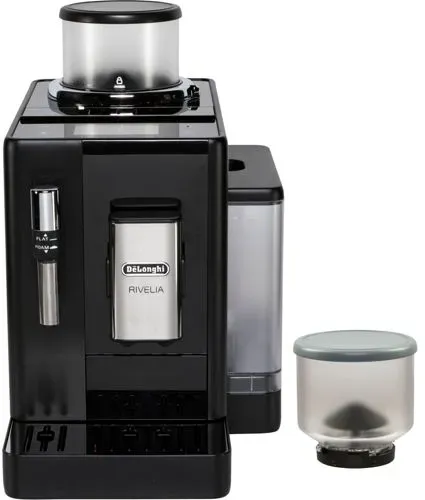 DeLonghi - EAN: 8004399026582 - Tauchen Sie mit Rivelia in die Welt des Kaffees ein. Entdecken Sie mit dem Bean Switch System unendliche Bohnensorten und genießen Sie ein immersives Kreieren Sie einen cremigen Schaum mit dem manuellen Milchaufschäumer in einer kompakten Maschine, die zu Ihrem Stil passt. Genießen Sie die einfache Bedienung des intuitiven 3,5-Zoll-Full-Touch-Farbdisplays mit umfangreichen Animationen. Rivelia lernt Ihre Kaffeeroutine und passt Ihr Menü den ganzen Tag über an, für ein immersives Kaffeeerlebnis, das auf Sie zugeschnitten ist. Die Maschine ermöglicht bis zu vier Benutzerprofile. Mit dem Bean Switch System können Sie neue Bohnensorten ausprobieren. Die Rivelia wird mit zwei austauschbaren 250-g-Trichtern geliefert, damit Sie verschiedene Kaffeearomen genießen können. Um sich auf den Wechsel vorzubereiten, verwenden Sie zunächst den Switch-Modus, um die aktuellen Bohnen aus dem Mahlwerk zu entfernen. Sie haben die Wahl: Sie können einen Kaffee brühen oder die Bohnen mahlen. Wechseln Sie zwischen acht Getränken und wählen Sie einfach Ihren Favoriten aus, darunter Espresso, Americano und Kaffee. - bei alternate.de - aus Yadore Produktdaten Ein preislich attraktives schwarzes Modell, das eine gute Leistung bietet. ![]() Delonghi De'Longhi Rivelia EXAM440.35.B