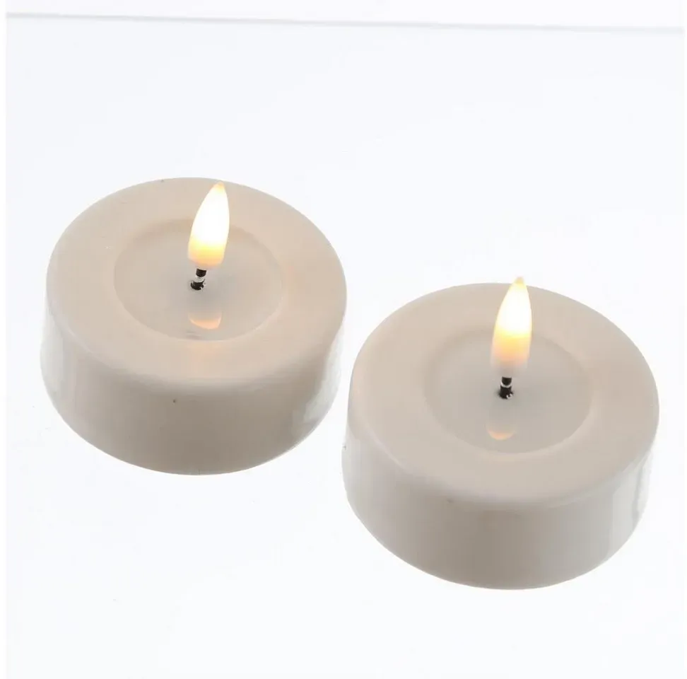 Kategorie: Kerzen - Deluxe Homeart - GTIN:0745125239156 - Die kleinen LED Teelichter aus echtem Stearin von DELUXE Homeart aus Dä,nemark haben eine tä,uschend echte Real Flame Flamme, die flackert und sind vielseitig einsetzbar.,Die patentierte Flamme kommt dem echten Kerzenlicht sehr nahe. Die Teelichter bestehen aus 100% echtem Stearin, was es noch naturgetreuer macht.,Die Teelichter sind vielseitig einsetzbar, und auch alleinstehend kö,nnen diese LED Teelichter genutzt werden, denn diese brennen nicht ab. ,,Lange Batterielaufzeit, benö,tigt 1xCR2450 (ist enthalten),Optionale Fernbedienung: ohne Fernbedienung kann die Kerze manuell ein und ausgeschaltet werden.,Eine Fernbedienung fü,r alle Deluxe Homeart LED Kerzen: Die optionale Fernbedienung ermö,glicht 4 verschiedene Timer-Dauern (2,4,6,8 Stunden) und kann die Helligkeit der Kerzen einstellen. Also unbedingt gleich mitbestellen!, - 14,90 Euro bei Skandeko - gefunden von billiger.de Dieses 2er Set Maxi Teelichter in Grau für 16,09 Euro bietet eine größere Variante in einer neutralen Farbe. ![]() ![]()