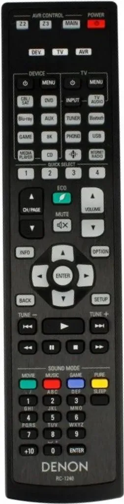Kategorie: Fernbedienungen - Denon - GTIN:8721003583483 - Originale Denon FernbedienungKeine lästigen Installationen notwendigAlle Funktionen (Sendereinstellungen, Menüfunktionen, etc.) vorhandenSie kaufen die abgebildete FernbedienungHersteller : DenonKompatibilität wie im Titel beschrieben Lieferumfang 1x Fernbedienung wie abgebildet! Ohne Batterien! - 59,95 Euro bei Kaufland.de - gefunden von billiger.de ![]() ![]() Denon AVR-X1800HDAB 7.2-Kanal AV-Receiver, HiFi Verstärker mit Dolby Atmos, DTS:X, 6 HDMI Eingänge und 1 Ausgang, 8K HDMI, Bluetooth, WLAN, AirPlay 2, HEOS Multiroom, Alexa kompatibel