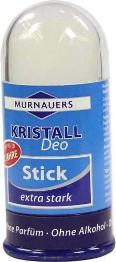 Murnauers - EAN: 04008890001257 - Anwendungsgebiet von Murnauers Kristall Deo Stick extra sensitivIn Murnauers Kristall Deo Stick extra sensitiv wird ein besonders reiner Ammonium-Aluminium-Alaunkristall verwendet, welcher dank seiner einzigartigen Kombination von Mineralkristallen zuverlässig vor Körpergeruch und Achselnässe schützt.Er ist nicht nur stark in seiner Wirkung, sondern auch sehr mild und hautverträglich, da er weder Farb- oder Parfümstoffe noch Alkohol und auch keine Konservierungsstoffe enthält.Wirkungsweise von Murnauers Kristall Deo Stick extra sensitivDurch die leicht adstringierende Wirkung verhindern die Deo-Kristalle ganz natürlich Körpergeruch, auf natürliche Weise ohne die Transpiration zu behindern oder Poren zu verstopfen. Alaun wirkt zudem antibakteriell wodurch das Wachstum schweißzersetzender Bakterien gehemmt und damit unangenehme Gerüche verhindert werden. Die sanft mikrobizide Wirkung hemmt das Entstehen von geruchsbildenden Bakterien durch die sehr wirksame Unterstützung des natürlichen Säureschutzmantels der Haut.Wirkstoffe / Inhaltsstoffe / ZutatenInhaltsstoffe von Murnauers Kristall Deo Stick extra sensitiv : Ammonium Alum.GegenanzeigenBei bekannter überempfindlichkeit gegen einzelne Inhaltsstoffe sollte Murnauers Kristall Deo Stick extra sensitiv nicht angewendet werden.DosierungAnwendungsempfehlung von Murnauers Kristall Deo Stick extra sensitiv: Mit Wasser anfeuchten und auf die gereinigten Achselpartien auftragen.Murnauers Kristall ... Ein beliebter und preisgünstiger Kristall Deo Stick von Murnauers, der guten Schutz bietet. ![]() ![]() Murnauers Kristall Deo Stick, 100 g