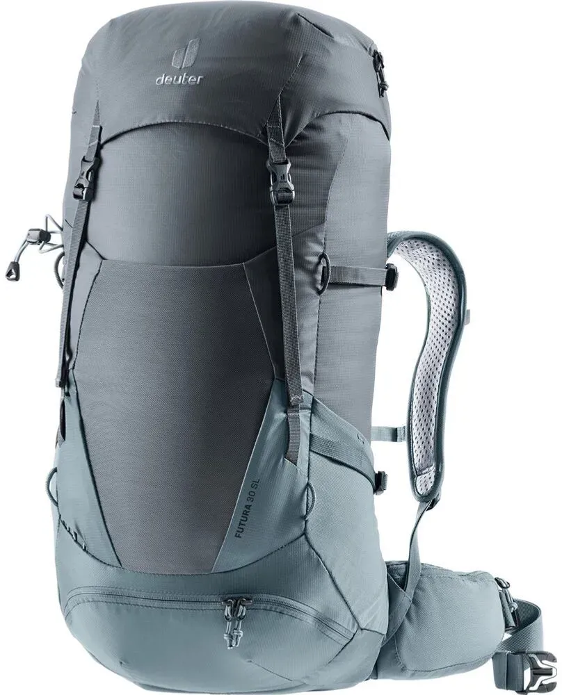 12 Händlerangebote bei billiger.de - Kategorie: Trekkingrucksäcke - Deuter - Maximale Belüftung durch das Aircomfort Netzrücken-System sorgt für besten Tragekomfort. Gleichzeitig perfekte Lastübertragung auf die Hüftflossen mit dem elastischen Federstahlrahmen Das Active-Comfort-Fit Rückensystem unterstützt den Tragekomfort durch bewegliche Schulterträger bei gleichzeitig formstabiler Konstruktion Bewegliche VariFlex Hüftflossen umschließen passgenau die Hüften und verteilen das Gewicht bequem Vorrichtung für Trinksystem (deuter Streamer 3.0 - nicht enthalten!) SL Women's Fit - speziell an die weibliche Anatomie angepasst - GTIN:4046051112343 Dieser 30-Liter-Damenrucksack in Grau/Schiefer bietet mehr Volumen für ausgedehntere Touren. ![]() ![]() Deuter Futura 30 SL Damen Rucksack graphite-shale