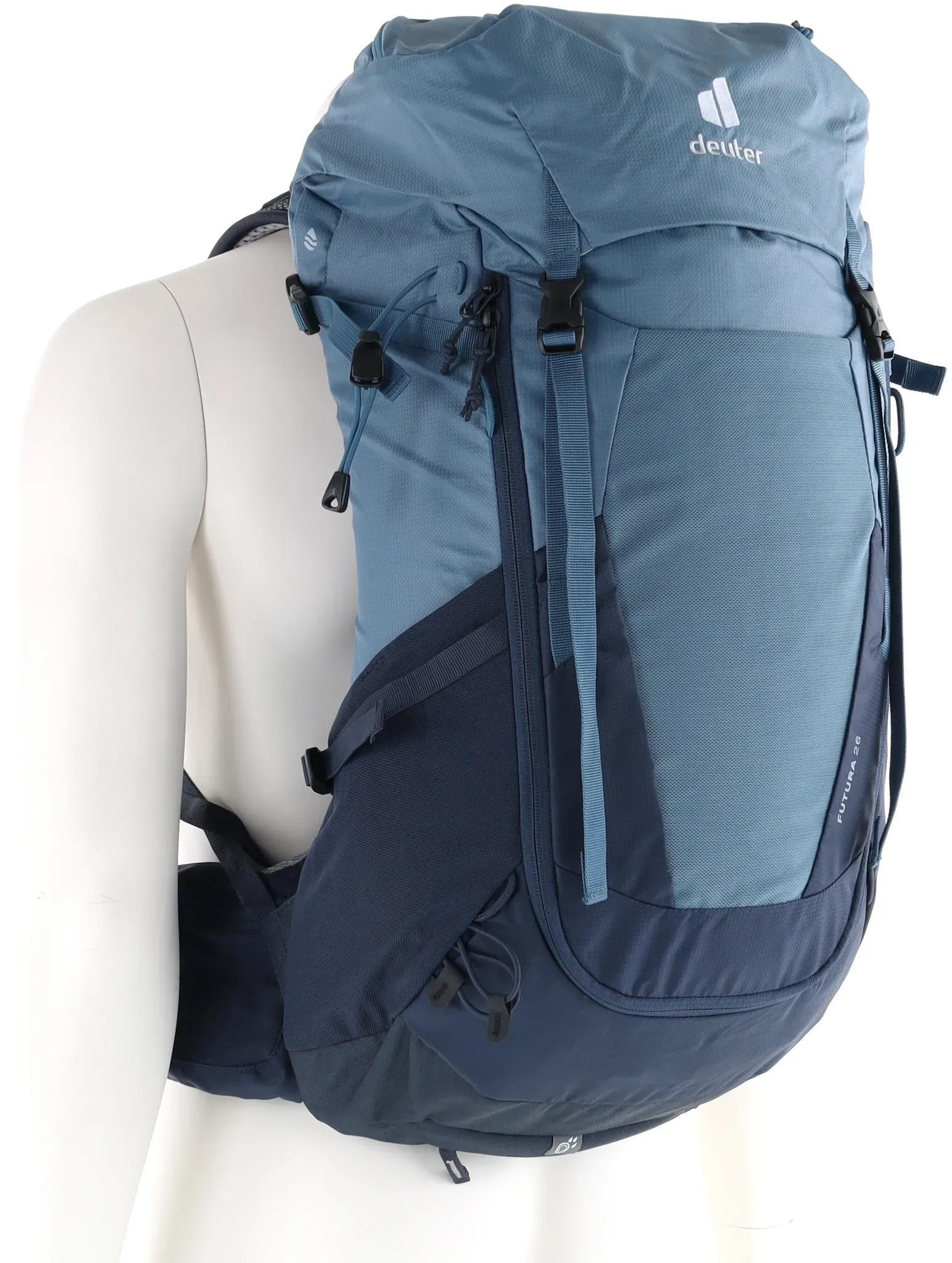 Verfügbarkeit: Sofort versandfertig, Lieferzeit ca. 1-3 Werktage - Kategorie: Daypacks - Deuter - GTIN:4046051171463 - Der leichte und funktionelle Futura SL Wanderrucksack ist speziell auf die weibliche Anatomie abgestimmt. Mit einem kürzeren Rücken, schmäleren Schulterträgern und konisch geformten Hüftflossen sitzt der Futura SL bequem auf dem Rücken. Das luftige Aircomfort Rückensystem sorgt mit dem neuen Mesh, bei sportlichen Tageswanderungen, für maximale Belüftung am Rücken. Sollte die Kleidung feucht werden, kann sie in der elastischen und luftdurchlässigen Fronttasche während der Wanderung schnell trocknen. Das Hauptmaterial der Futura-Serie besteht aus bluesign®-zertifiziertem Material. SL Women's Fit Active Comfort Fit Lageverstellriemen Rundprofilrahmen aus dauerelastischem Federstahl Elastische Seitentaschen Stufenlos verstellbarer Brustgurt Vorrichtung für Trinkblase (bis 3.0 Liter) Regenhülle Innenfach zur sicheren Unterbringung von Wertgegenständen Stockhalterung Stretch-Innenfach zum Verstauen nasser Kleidung oder der Trinkblase Schlaufen für Helmhalterung (Helmhalterung nicht im Lieferumfang enthalten) Fach zur sortierten Unterbringung von Stiften, Telefon, etc. anschmiegsame Hüftflossen Aircomfort System Pull-Forward Hüftflossen Frontstecktasche PFAS-frei Recyceltes Hauptmaterial bluesign® zertifiziertes Material Geschlecht: Damen Gewicht: 1300 g Volumen: 25 Liter Maße: 53 / 28 / 20 (H x B x T) cm Zuladungsempfehlung: 4 - 8 kg ... Dieser 32-Liter-Rucksack in Blau ist eine gute Wahl für längere Tagestouren oder Wochenendausflüge. ![]() ![]() Deuter Futura 32l Rucksack-Blau-32