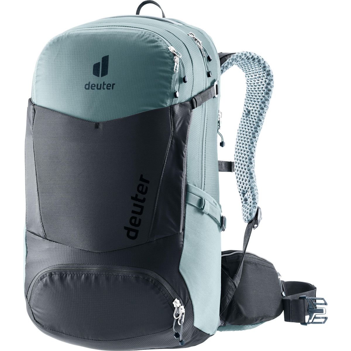 14 Händlerangebote bei billiger.de - Kategorie: Fahrradrucksäcke - Deuter - Das gewichtsreduzierte Airstripes-Tragesystem mit geringer Rückenauflage und luftdurchlässigem Abstandsgewirke (Air-Spacer-Mesh) sorgt für zuverlässige Belüftung auch auf schweißtreibenden Etappen und sitzt kompakt am Körper. Zusätzlich halten der Brustgurt mit einhändig bedienbarer Brustgurtschnalle und die Hüftflossen den Packsack optimal in Position. Die ergonomisch geformten und gepolsterten Schulterträger nehmen den Druck auch von schwereren Lasten gut auf. Die durchdachte Aufteilung von Fächern, Taschen und großem, aufklappbarem Organisationsfach sorgt für beste Ordnung und gute übersicht. Im separaten Trinkblasenfach lässt sich ein Trinksystem mit bis zu 3L verstauen. Praktisch sind auch die großen Hüfttaschen sowie die seitlichen Taschen für alles, was schnell zur Hand sein muss. Reflektierende Element, Sicherheitshinweise im Inneren des Rucksacks sowie eine Signalpfeife tragen zur zusätzlichen Sicherheit auf Radtouren bei. Maße: 55 cm x 29 cm x 21 cm | Gewicht: 1350 Gramm - GTIN:4046051170374 Ein aktuelles Modell zum guten Preis, ideal für Herren, die Wert auf moderne Features und ein ansprechendes Design legen. ![]() deuter Trans Alpine Pro 28 Grau Modell 2026 28 L
