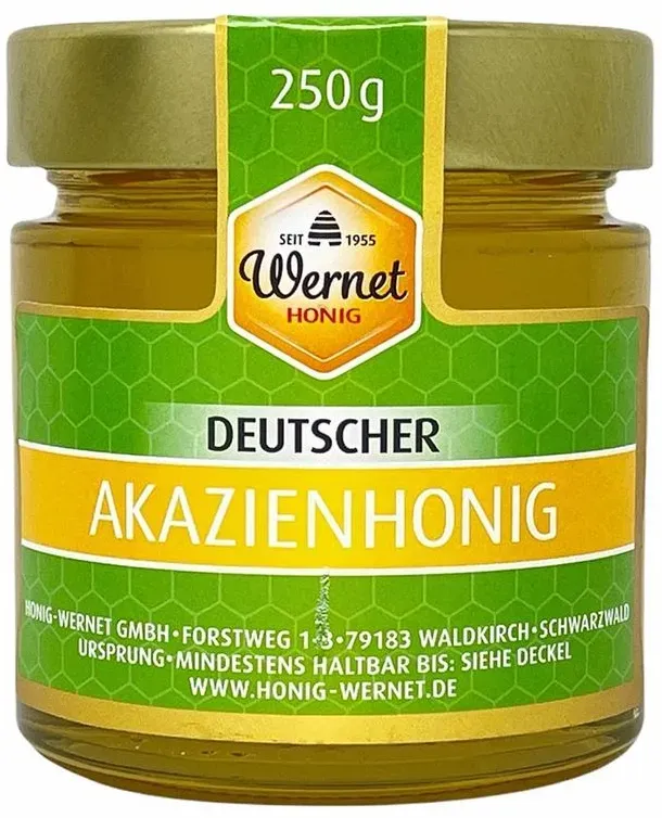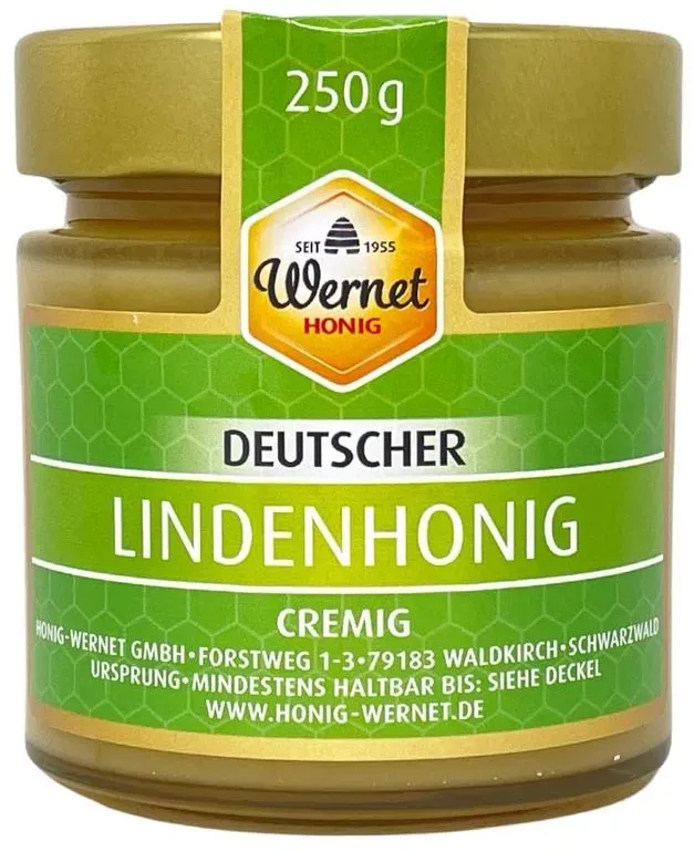 Verfügbarkeit: 1-2 Werktage - 24,16 €/kg - Kategorie: Honig - honig wernet - GTIN:4002918129107 - Deutscher Linden HonigCremiger deutscher Lindenhonig von Wernet €“ Ein feiner Genuss aus dem SchwarzwaldDer cremige deutsche Lindenhonig von Wernet ist ein wahres Juwel unter den Honigsorten. Dieser exquisite Honig wird von einer traditionsreichen Imkerei hergestellt, die sich der nachhaltigen Imkerei verschrieben hat. Mit seiner feinen, blumigen Note und der cremigen Konsistenz ist dieser 250g Honig ein ideales Produkt für alle, die hochwertigen, naturbelassenen Honig schätzen.Warum Lindenhonig?Lindenhonig wird aus dem Nektar der Lindenblüten gewonnen, die in voller Blüte im Sommer stehen. Die Bienen sammeln den Nektar und verwandeln ihn durch ihre Arbeit in diesen köstlichen Honig. Er hat eine helle Farbe und ist für seinen einzigartigen Geschmack bekannt, der sowohl süß als auch leicht würzig ist. Der Lindenhonig von Wernet hat darüber hinaus die besondere Eigenschaft, schnell eine cremige Konsistenz zu entwickeln, was ihn besonders vielseitig macht.Ihr Vorteil: Einzigartiger Geschmack und cremige TexturGenießen Sie den Lindenhonig auf frischem Brot, im Joghurt oder als Zutat in Ihren Lieblingsdesserts. Die cremige Textur macht ihn einfach zu verwenden und sorgt dafür, dass er überall gut haftet.Traditionelle Qualität aus dem SchwarzwaldDie Imkerei Wernet steht seit Generationen für höchste Qualität und handwerkliche Sorgfalt. Die Bienenstöcke befinden ... Der Akazienhonig von Honig Wernet ist eine flüssige und milde Sorte, ideal für alle, die einen weniger intensiven Honig bevorzugen. ![]() ![]() Honig Wernet Deutscher Akazienhonig €“ Schwarzwälder Imkerhonig im 250g Glas