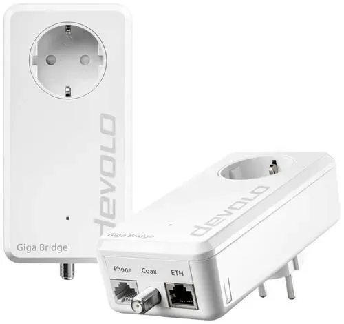 Devolo giga bridge META PreisvergleichMit dem Meta-Preisvergleich suchen Sie gleichzeitig bei den großen Preisvergleich Portalen!Jetzt live Suche nach devolo giga bridge starten! Devolo giga bridge KaufberatungDevolo Giga Bridge - Kaufberatung und wichtige InformationenDie Devolo Giga Bridge ist eine spezialisierte Lösung für die Verteilung von Glasfaser-Internetgeschwindigkeit im Haus über bestehende Kabel-Infrastruktur. Hier sind die wichtigsten Aspekte für Ihre Kaufentscheidung: Funktionsweise und TechnologieDie Devolo Giga Bridge nutzt den Standard ITU-T G.hn und überträgt Daten über vorhandene Koaxial- oder Telefonleitungen im Haus.[1] Dies ermöglicht es, Glasfaser-Geschwindigkeiten von bis zu 1000 Mbps über bestehende TV- oder Telefonkabel zu verteilen - ohne aufwendige Neuverkabelung.[2] Verfügbare ModelleEs gibt mehrere Varianten der Devolo Giga Bridge: