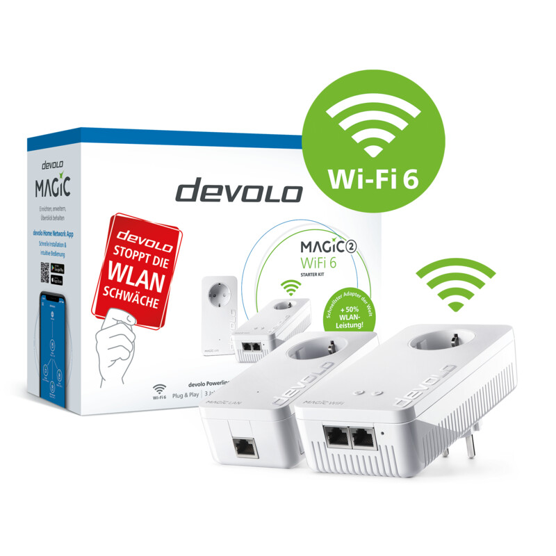 lieferbar-in 2-3 Werktagen bei dirDEVOLO Magic 2 WiFi 6 next Starter Kit Reichweitenverstärker, Powerline Mesh WLAN Verstärker 2x Adapter