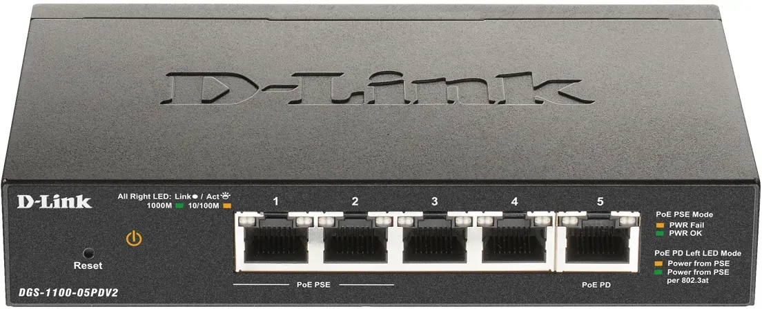 sofort ab Lager / 24h-Service möglichD-Link DGS-1100-05PDV2 Smart Managed Switch 5x Gigabit Ethernet (2x PoE, 8W)