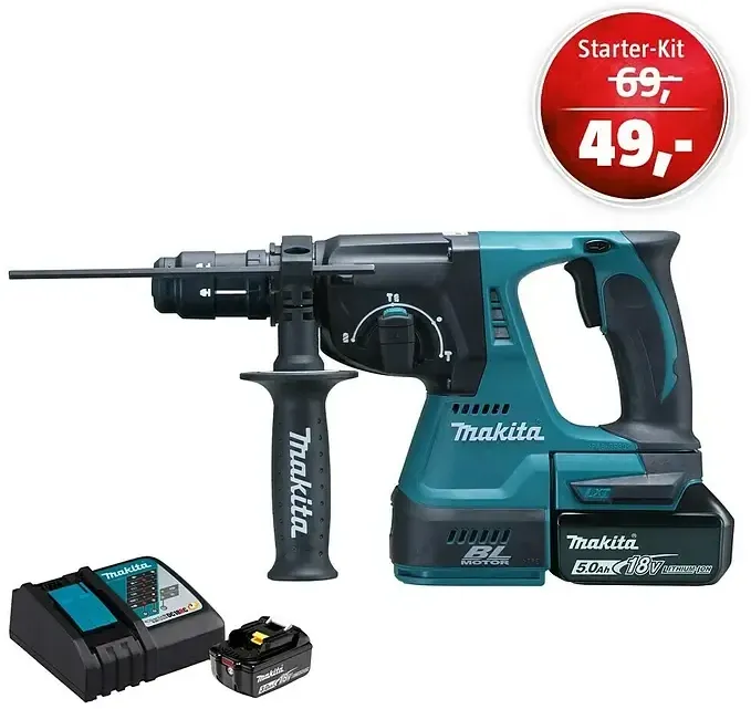 Verfügbarkeit: 1-4 Werktage - 518 €/Stück - Kategorie: Bohrhämmer - Makita - GTIN:0088381686204 - Produktinformationen zu den Einzelkomponenten des Sets erhalten Sie, indem Sie auf die Produkte im Lieferumfang klicken. # Makita LXT 18V €“ ein Akku für alle Dieser Artikel ist Teil des Makita LXT 18V Akkusystems. Das System erlaubt es mehr als 300 Akku-Geräte mit ein und demselben Akku zu betreiben - egal ob Elektrowerkzeuge oder Gartengeräte. Für eine Vielzahl von Anwendungen ist etwas dabei: Bohren, Schrauben, Oberflächen schleifen, Boden reinigen oder Form- und Pflegeschnitte im Garten - mit dem LXT 18V System erledigen Sie all dies mit nur einem Akku. Zusätzlich kann zwischen verschiedenen Akkugrößen gewählt werden, um den jeweiligen Arbeitsanforderungen vollkommen gerecht zu werden. Alle Makita LXT 18V Akkus verfügen über ein integriertes Zellüberwachungssystem, das die Akkuzellen überwacht und Informationen aller Ladezyklen speichert. Während des Ladevorgangs werden diese Daten digital mit dem Ladegerät ausgetauscht, um den Ladevorgang so effizient und schnell wie möglich durchführen zu können und gleichzeitig potenzielle Risiken wie eine zu hohe Temperatur, überladung und Tiefentladung zu minimieren. # Angebote & Aktionen # +++ *Makita Aktion 30.05.-28.06.2025: Starterkit für 49€ statt 69€ bei Kauf eines Makita 18V Akku-Gerätes +++ Erhalten Sie beim Kauf eines Makita Akku-Gerätes der LXT 18V-Serie das passende 18V Starter-Kit aus 3,0 Ah ... Dieses Set von Contorion ist interessant, da es den Kombihammer mit einem Bosch SDS plus-7X 7tlg Set EXPERT kombiniert. Contorion. de