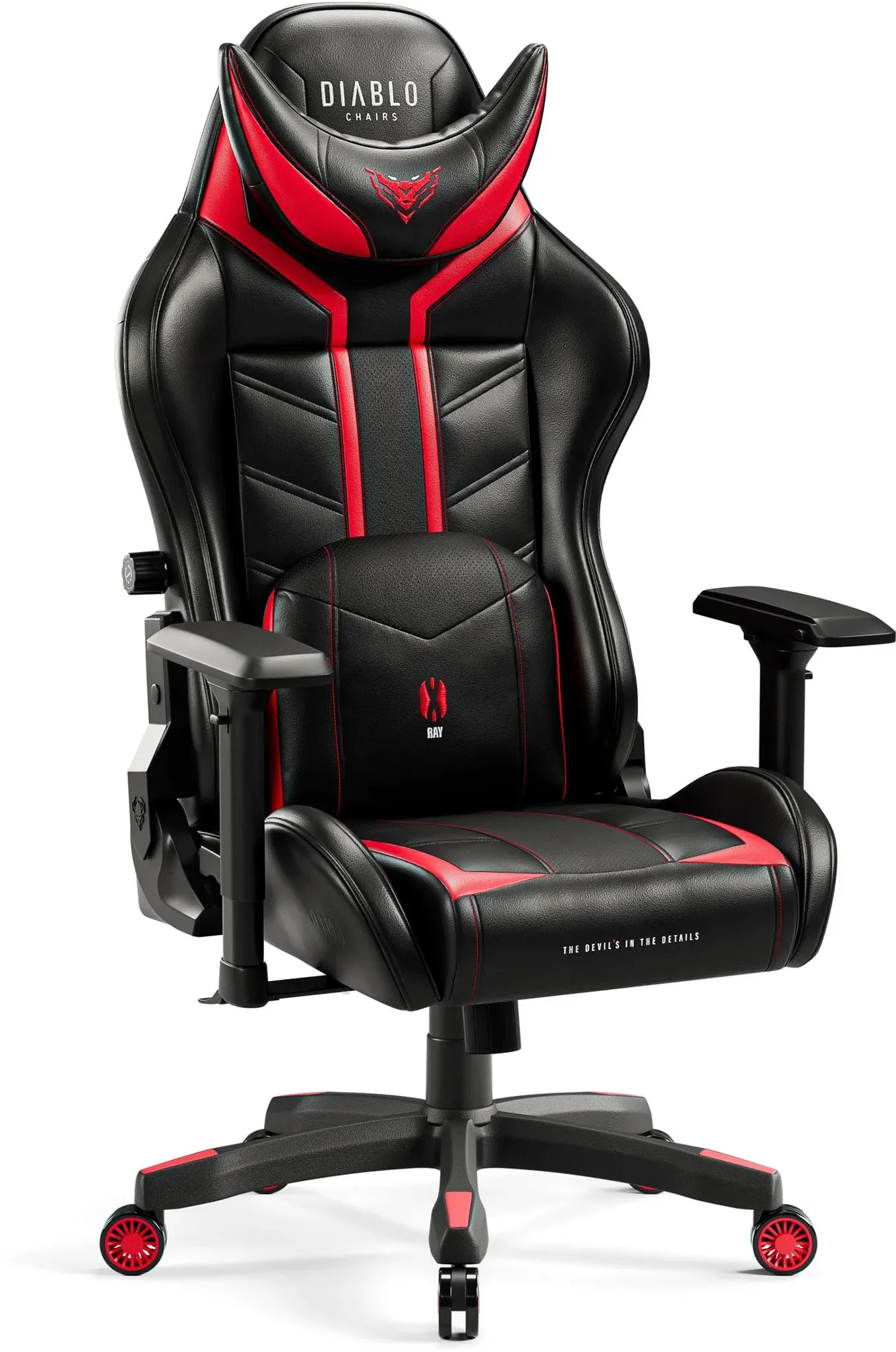 Auf Lager Versand durch AmazonDiablo X-Ray Gaming Stuhl Bürostuhl Gamer Chair Schreibtischstuhl 4D Armlehnen Ergonomisches Design Kunstleder Perforation Wippfunktion Schwarz-Rot Normal (L)